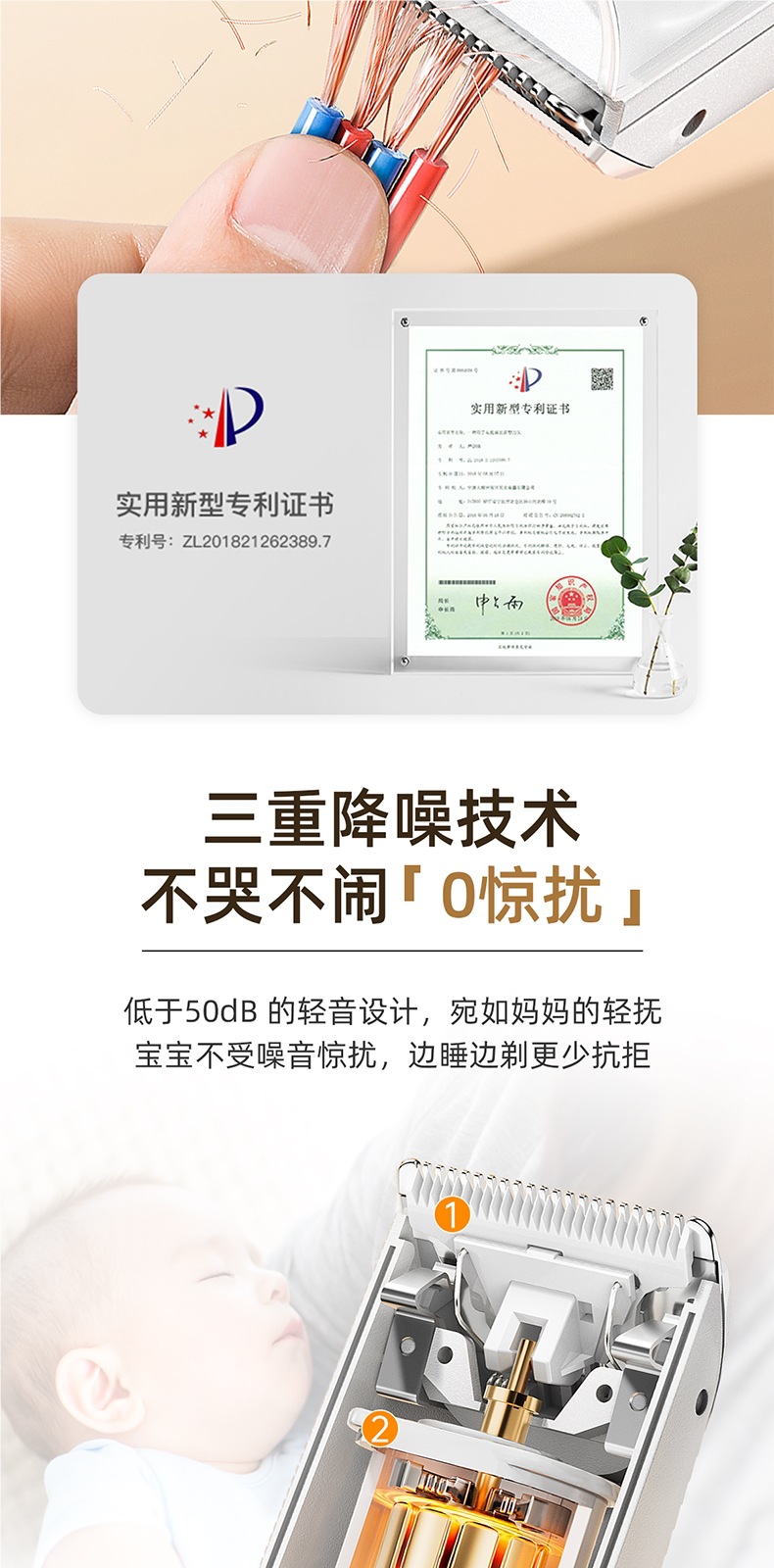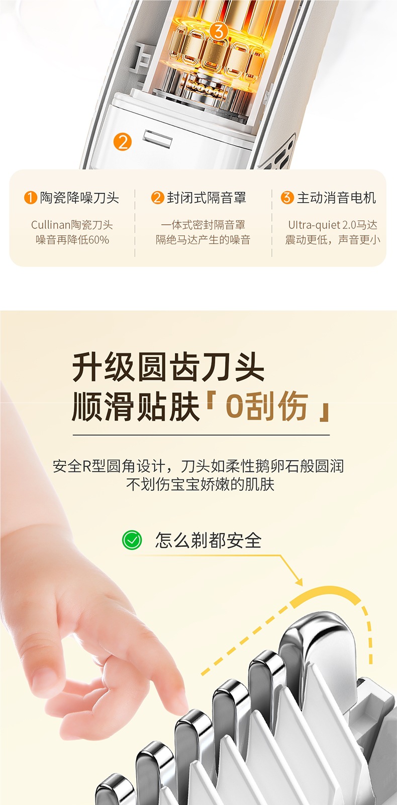 Электробритва для детей, автоматический захват волос, ультра-тихое бритье для младенцев, электрическая машинка для стрижки волос для детей