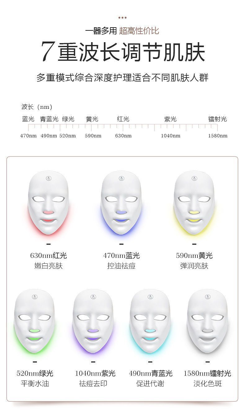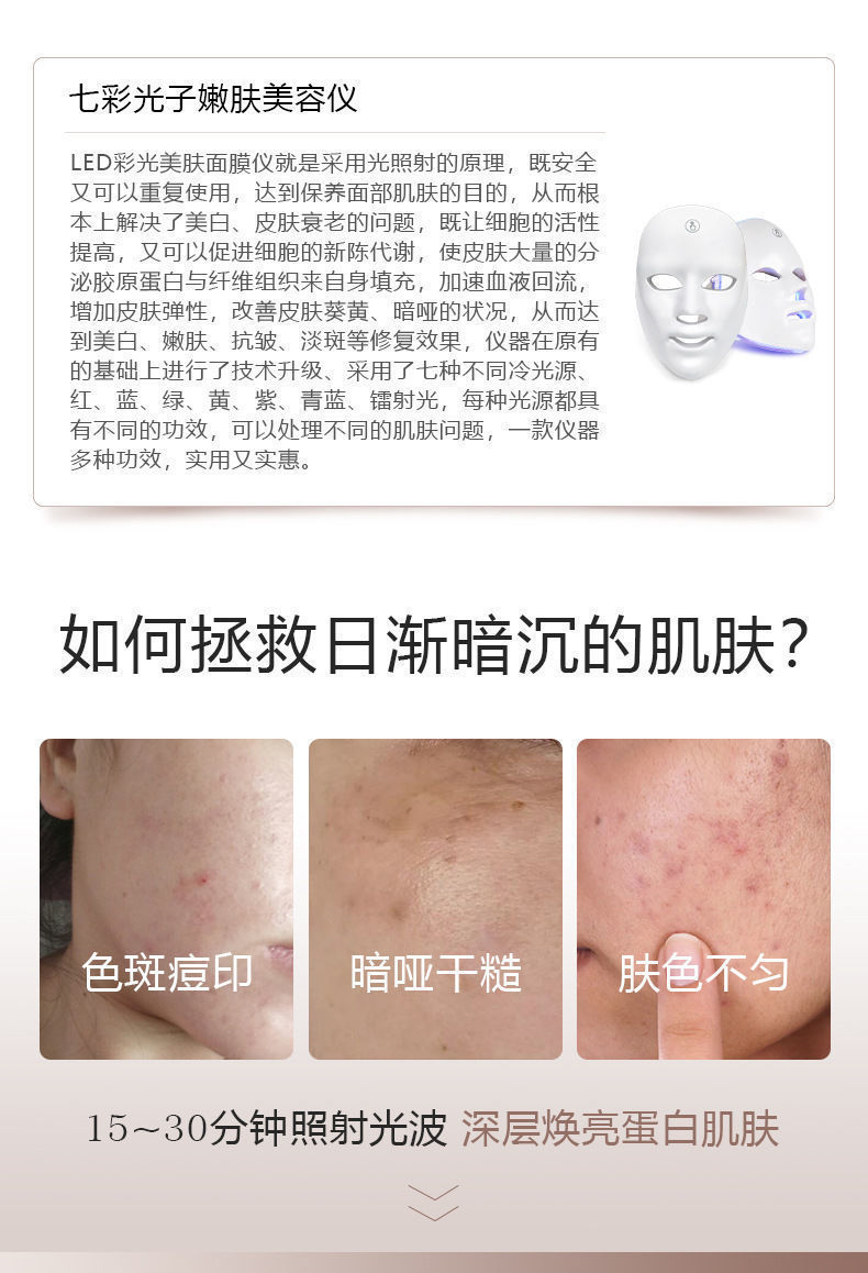Устройство для лица с семью цветами света, перезаряжаемая маска, эксклюзивная фотомолодежь