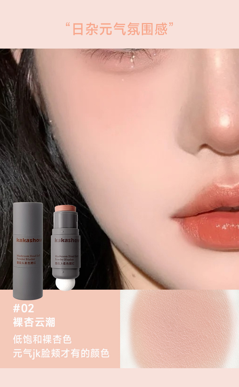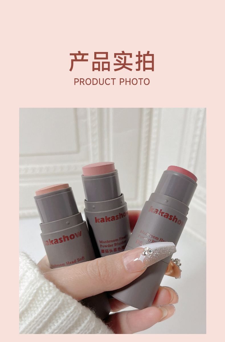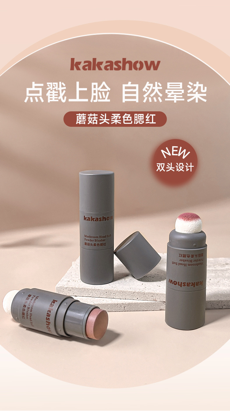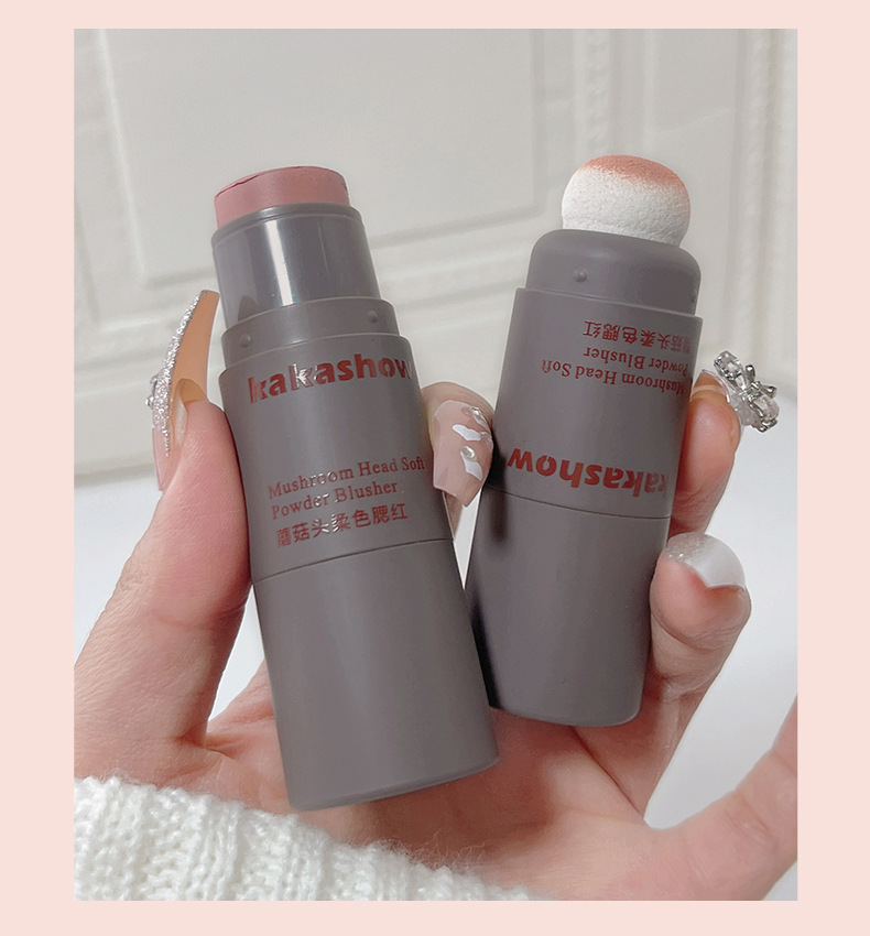 Косметика Kakashow для макияжа с грибной головкой, мягкий цветной румяна, матовая кремовая двусторонняя палочка для румян, мягкая и легкая в нанесении