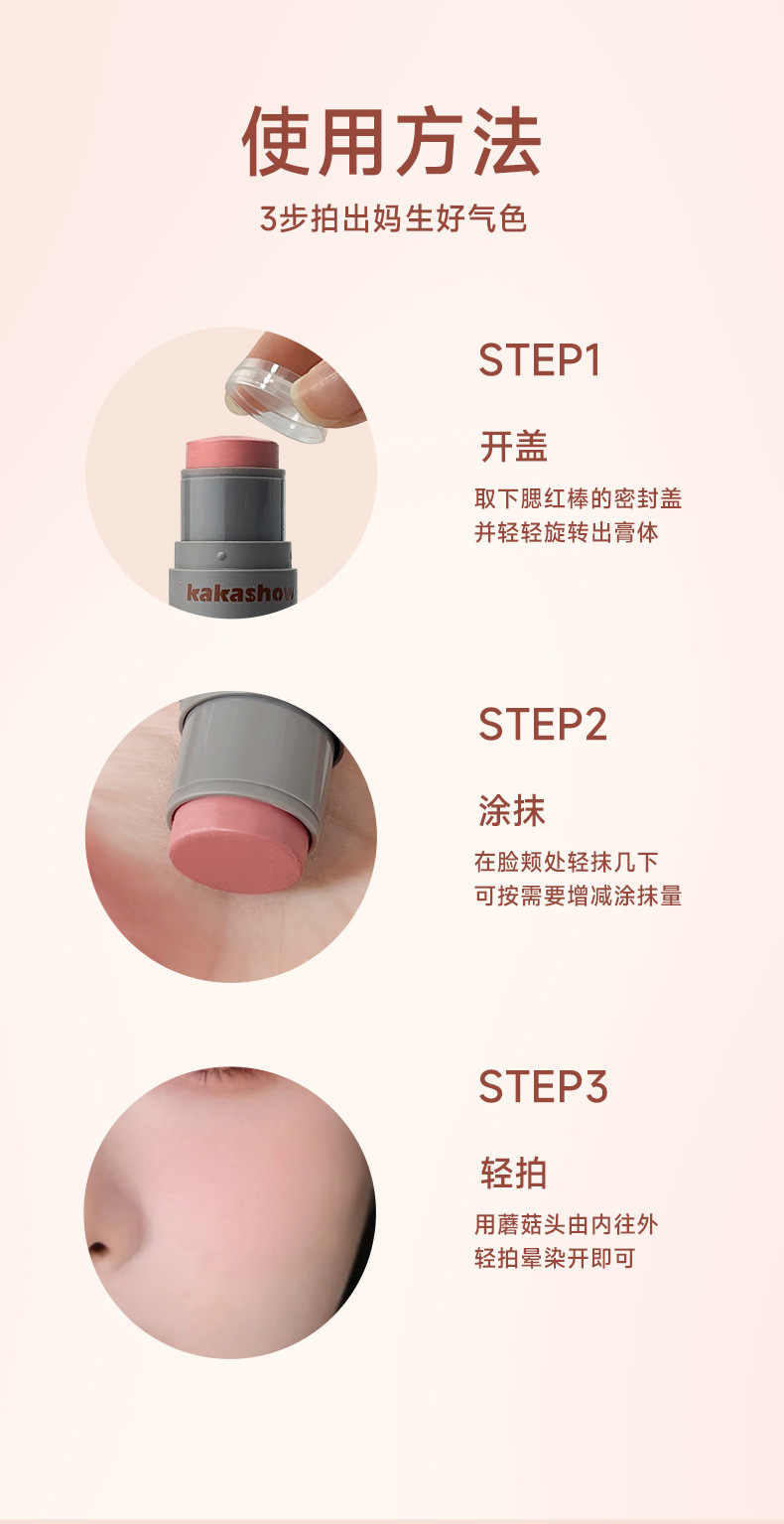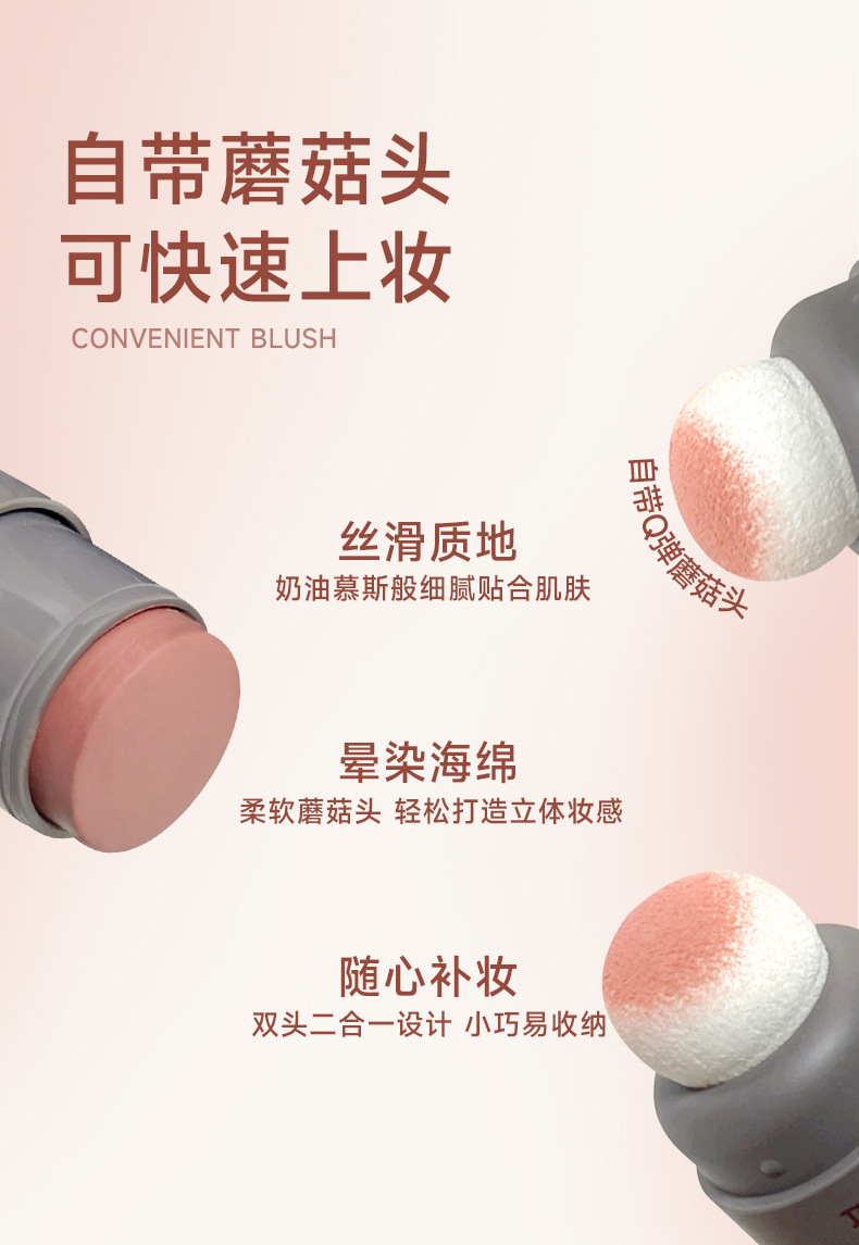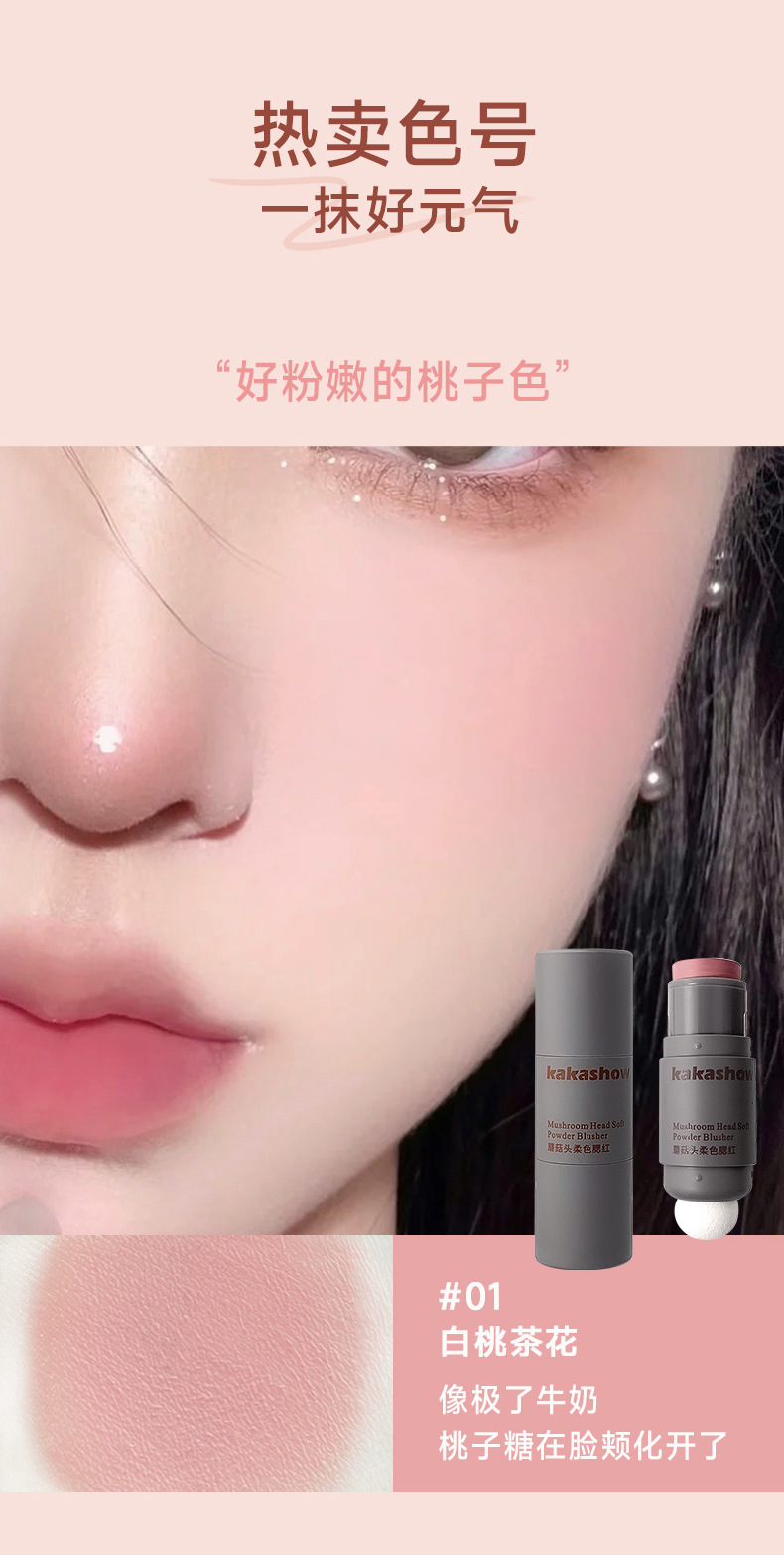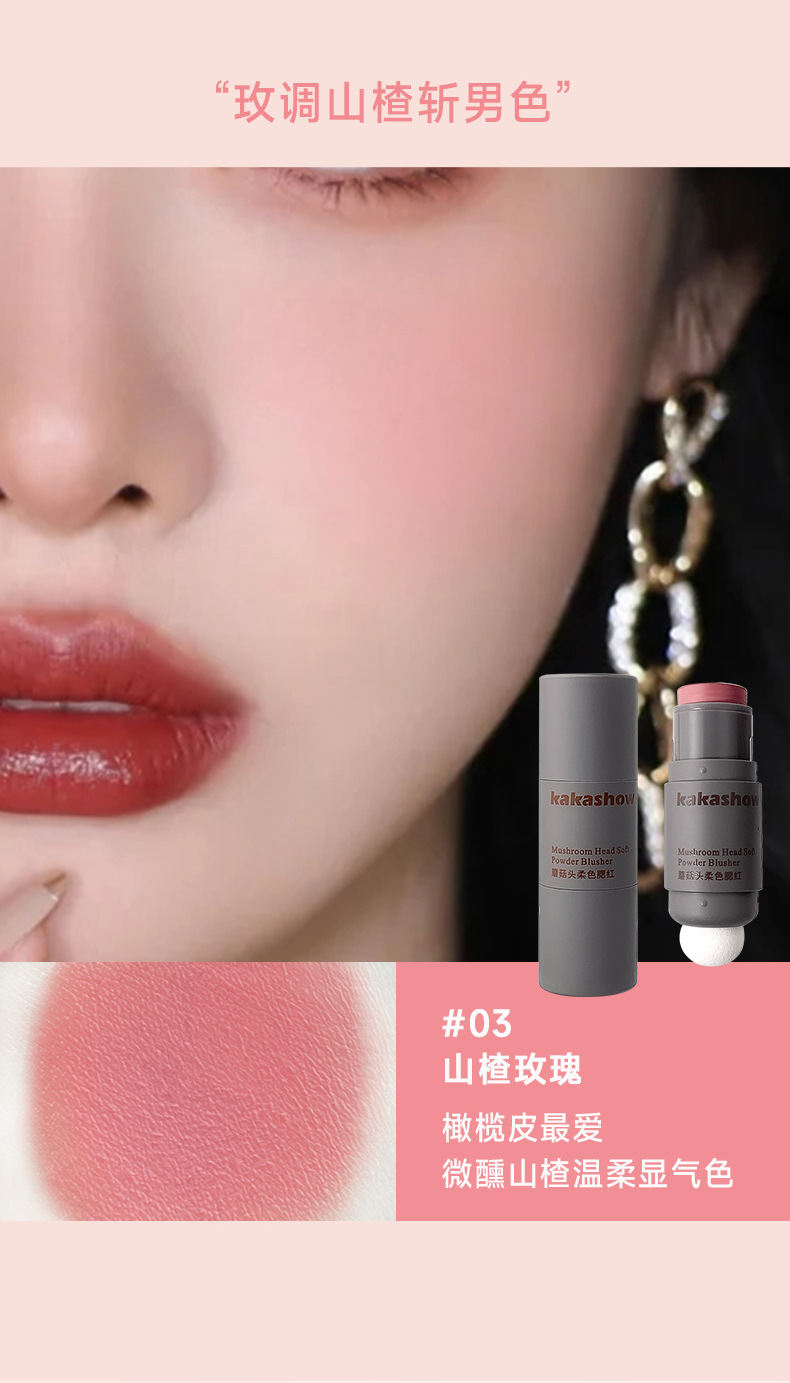 Косметика Kakashow для макияжа с грибной головкой, мягкий цветной румяна, матовая кремовая двусторонняя палочка для румян, мягкая и легкая в нанесении