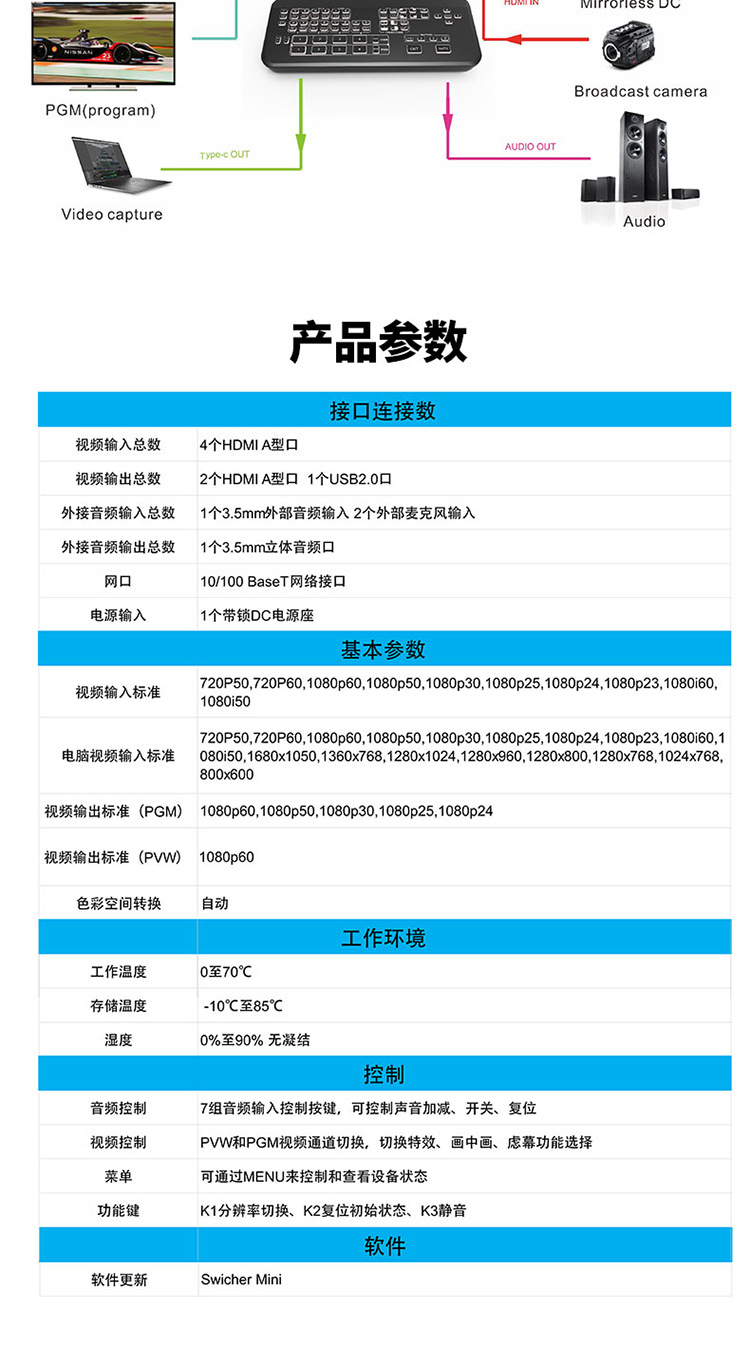 Четырехканальный HDMI высококачественный директорский стол поддерживает RGB трехцветный фон вырезка, прямой эфир, видеоконференции, радио и телевидение и др.