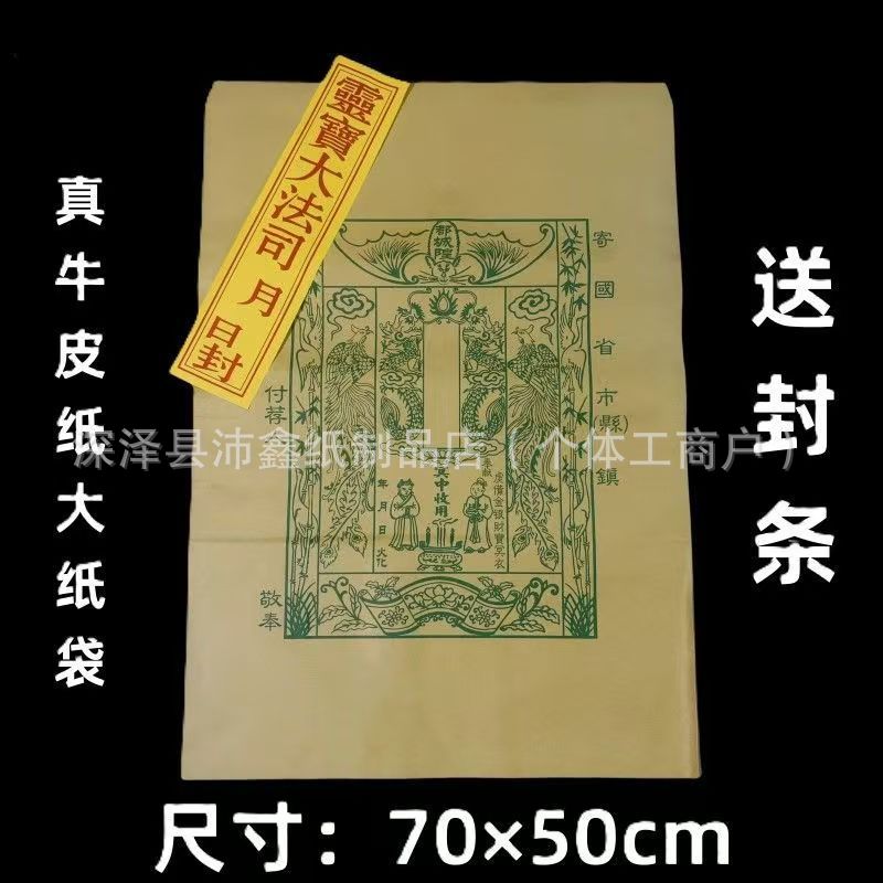 Конверт из крафт-бумаги, запечатанный мешок, пакет для слитков, мешок для денег, длина 70, ширина 50 см, бумажный мешок для поклонения предкам