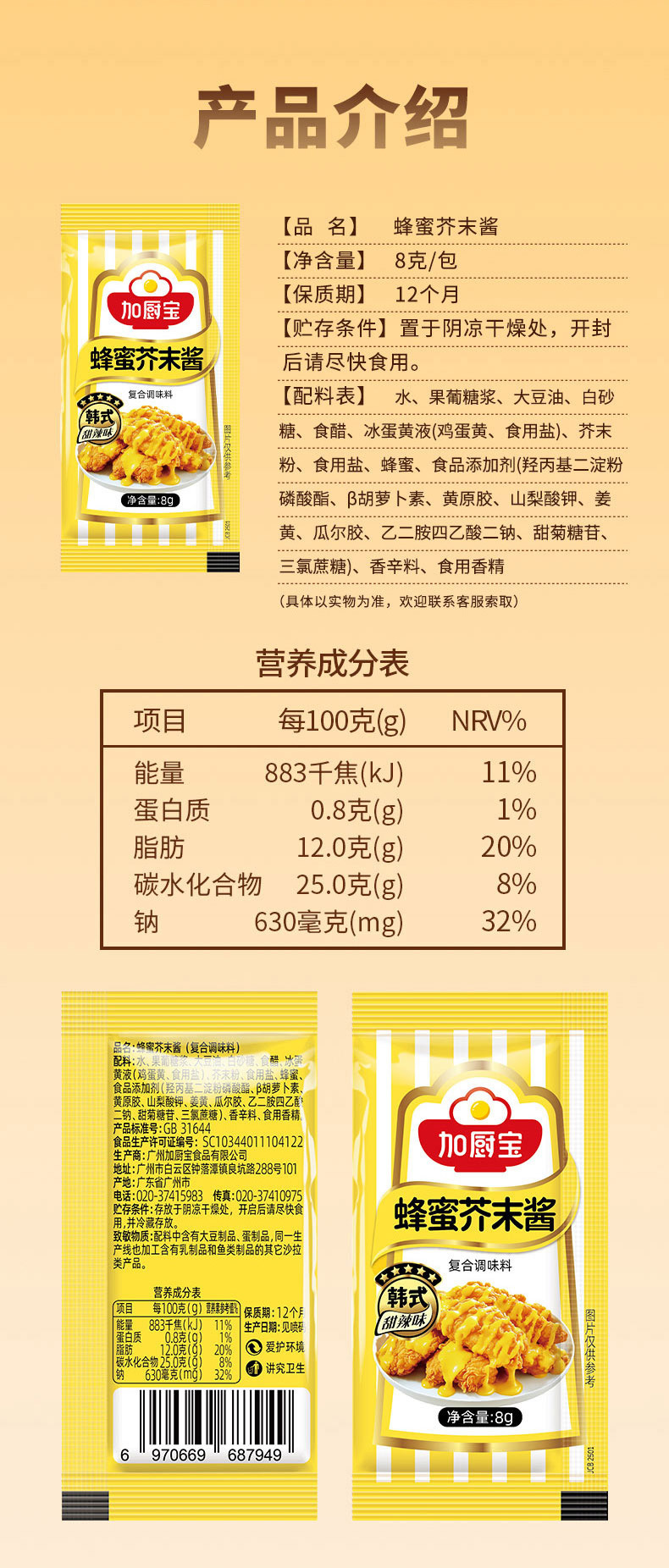 📦 | Honey mustard sauce 8g | 15шт: ¥0.35, 200шт: ¥0.30, 2000шт: ¥0.25 | 7191 | 6074073010453 |