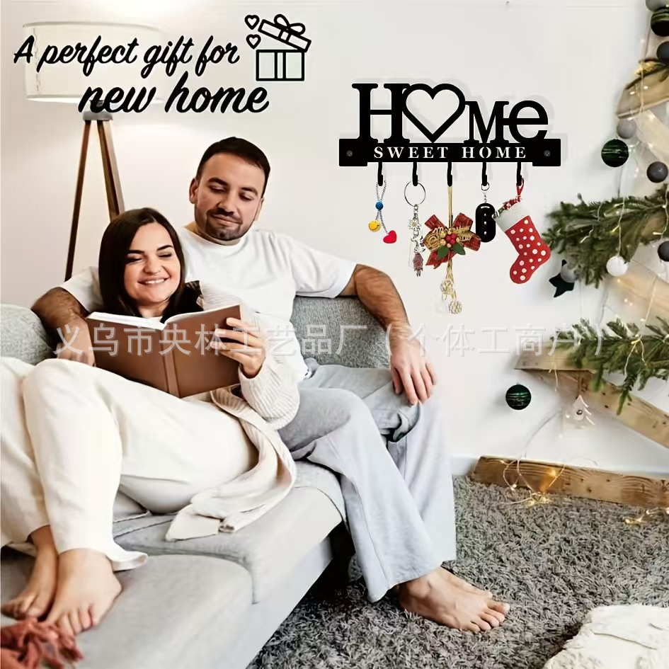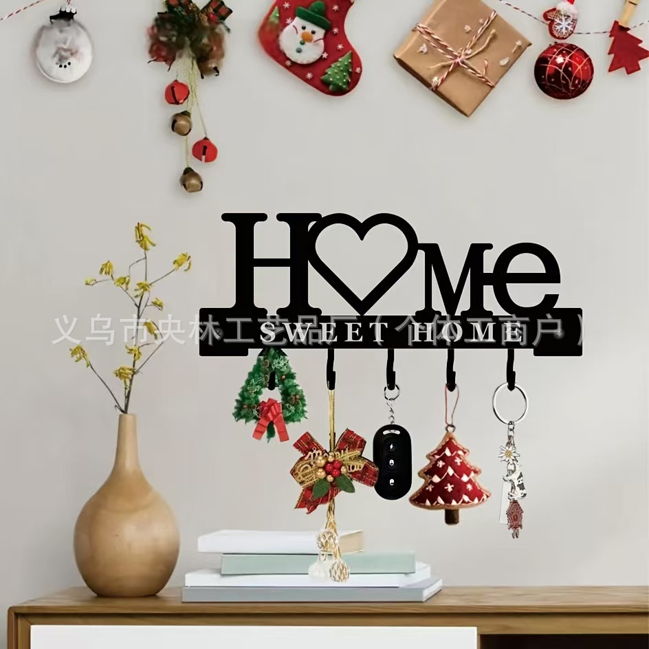 阿拉伯创意铁艺HOME钥匙挂钩浴室情侣衣帽挂架收纳贴墙衣架钩子工