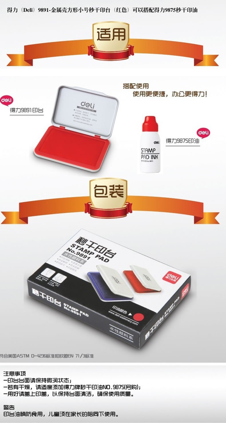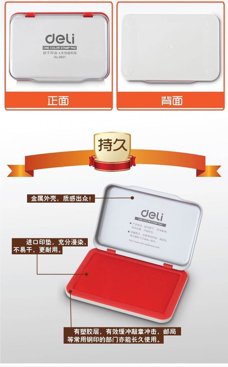 Deli 9891 Красная быстро сохнущая подушка для отпечатков пальцев с металлическим корпусом