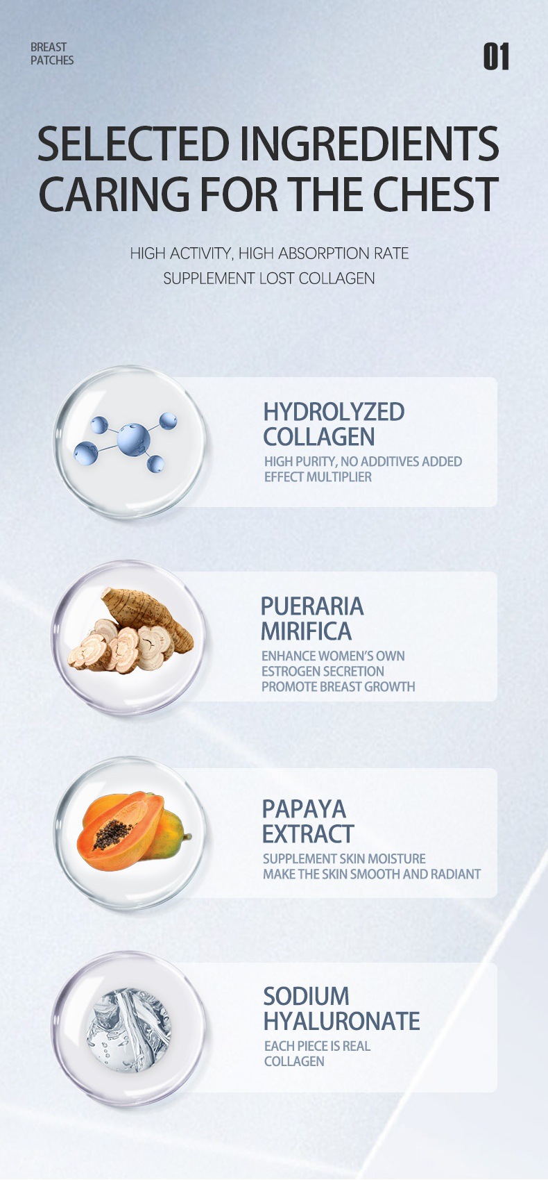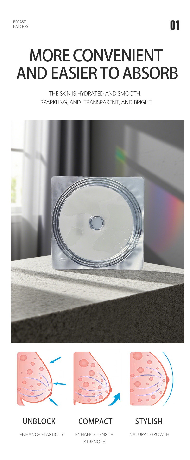 Кристаллический патч для груди, увлажняющий, подтягивающий, с коллагеном
