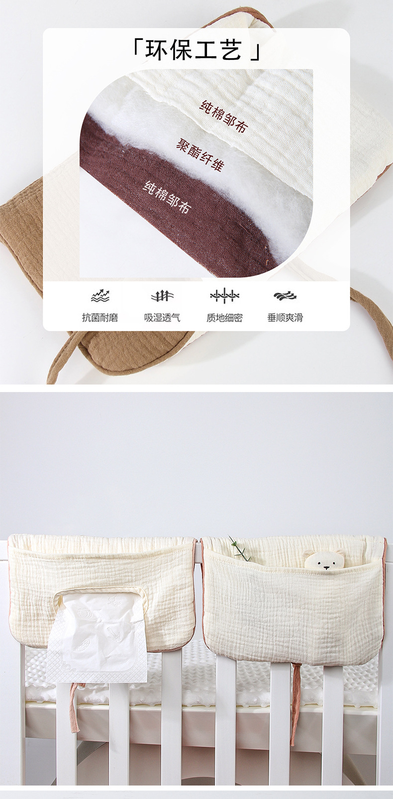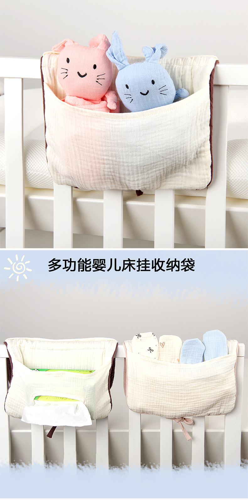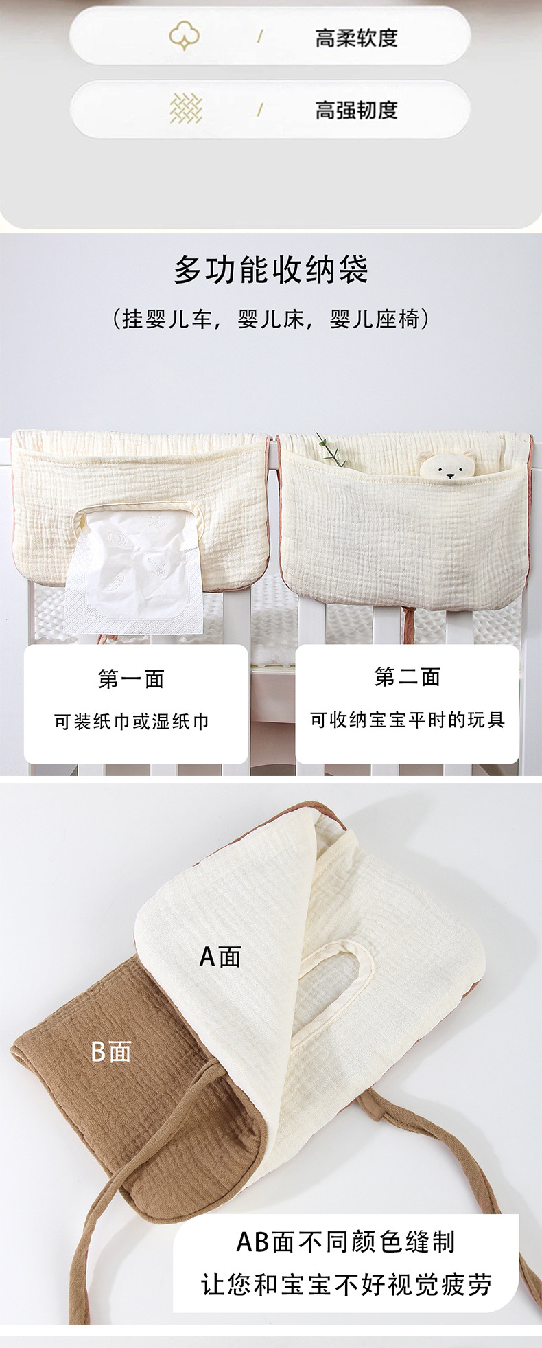 Многофункциональная сумка для хранения, органайзер для детской кроватки и коляски, из чистого хлопка