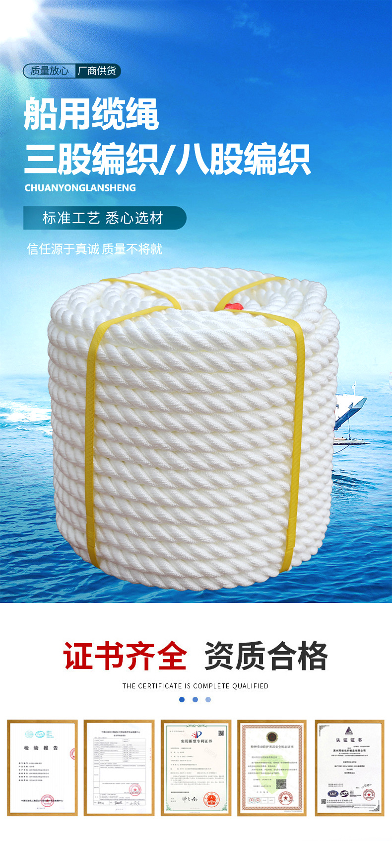 Кабель морской высокой прочности, трехпрядный/восьмипрядный полипропиленовый длинноволокнистый канат для судов и рыбалки, водонепроницаемый кабель