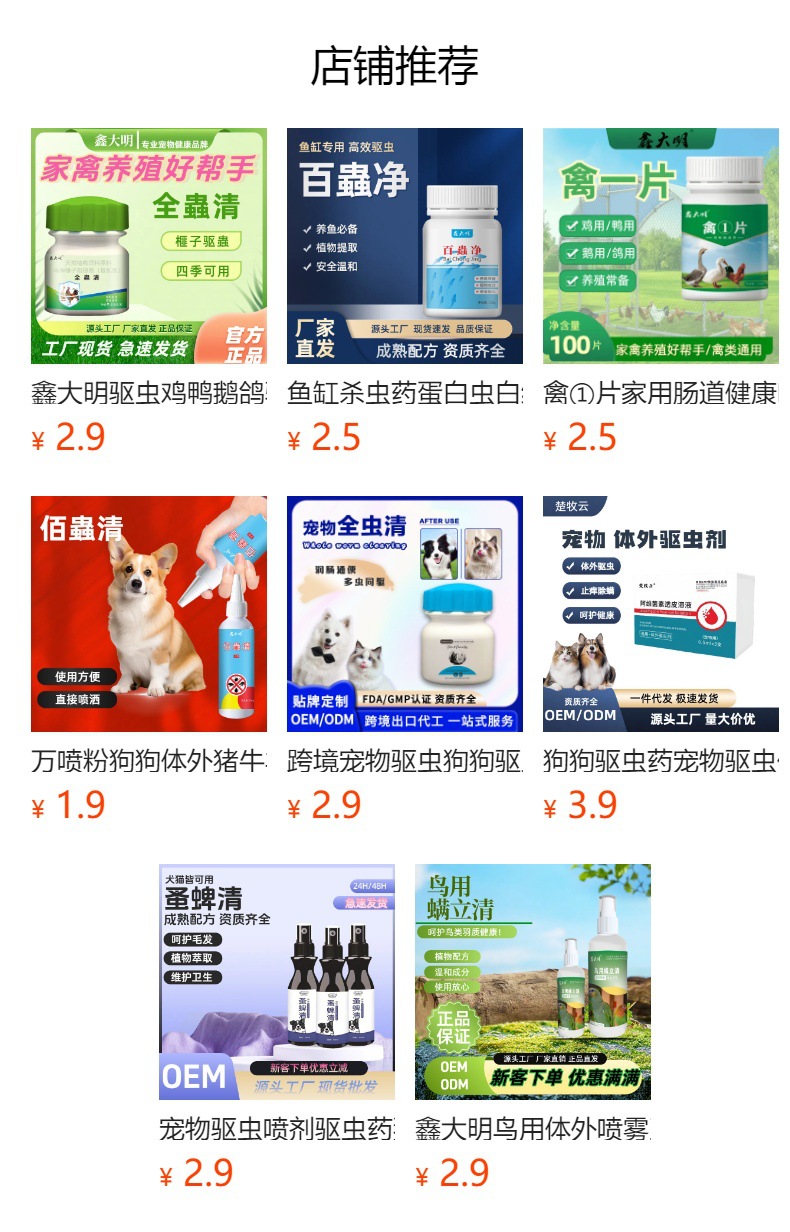 ![]() | All-in-one flea & tick treatment - one bottle (60 tablets) | 1шт: ¥2.90, 101шт: ¥2.70, 501шт: ¥2.40 | 8841 | 5945977916873 | |
