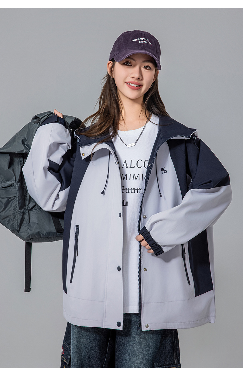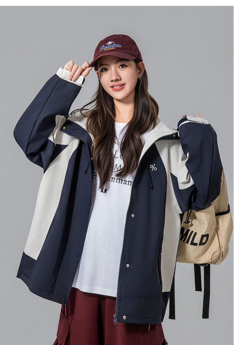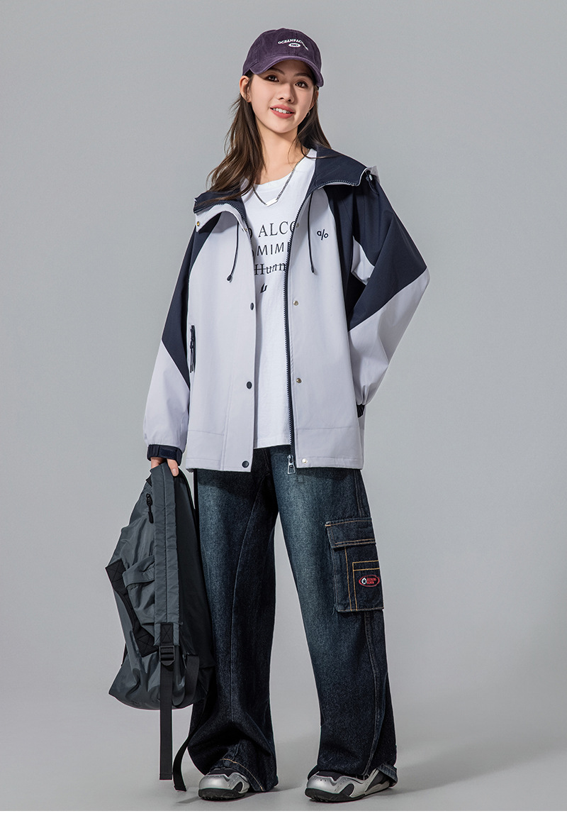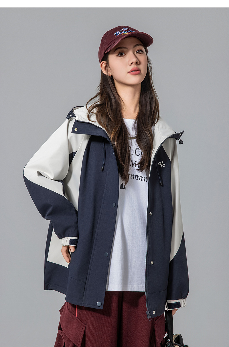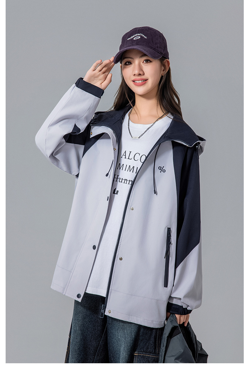 Женская куртка осень 2025, новый стиль с капюшоном, модное рабочее пальто для учеников средней школы, свободная ветровка для старшеклассников
