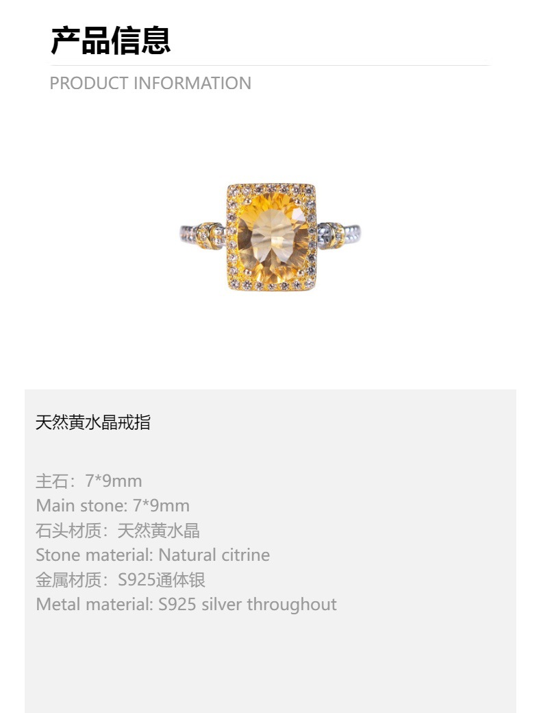 Новое кольцо из натурального цитрина в европейском и американском стиле с инкрустацией из 925 стерлингового серебра, доступная роскошь, высококачественное кольцо для женщин