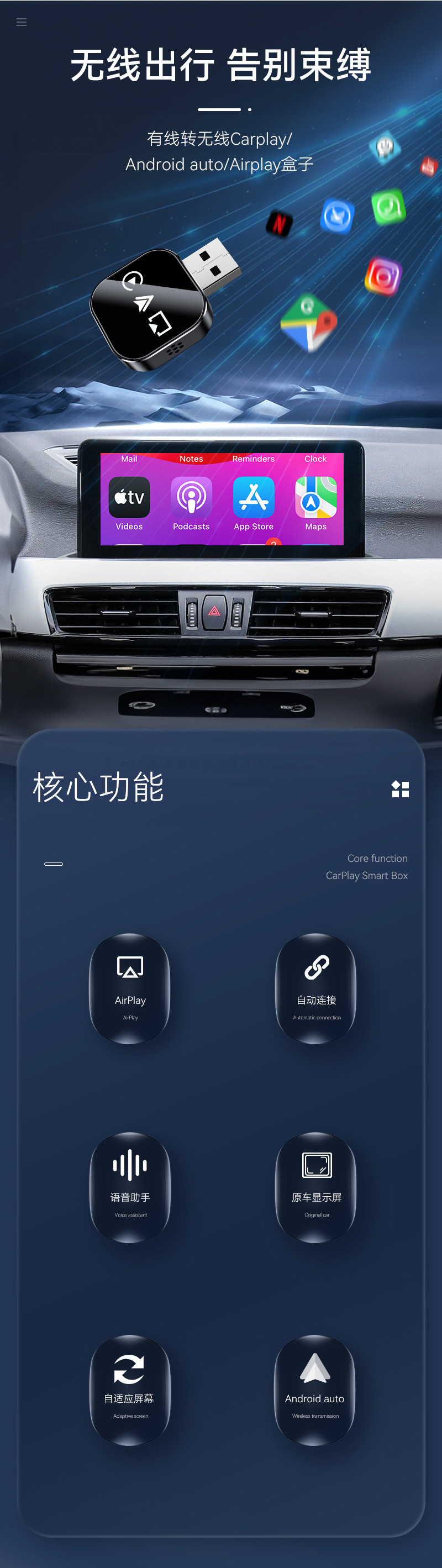 ![]() | Q1as black white label metal + glass 3-in-1 wireless carplay & android auto adapter with android mirror screen casting - optimized for overseas systems only | 1шт: ¥89.90, 2шт: ¥88.90, 5000шт: ¥87.90 | 5742 | 5929592917758 | |