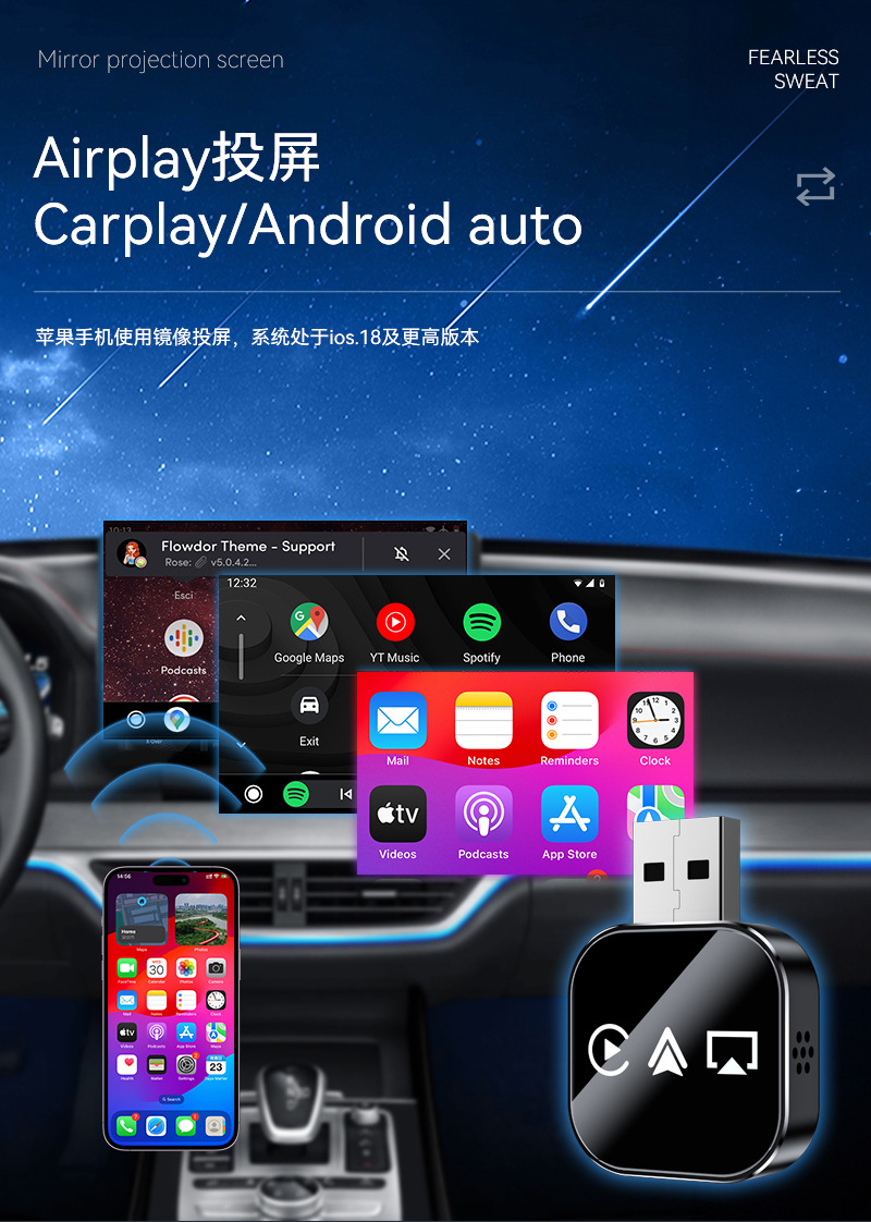 Модуль взаимосвязи для автомобилей Carplay, проекция зеркального экрана, подходит для Apple и Android Auto