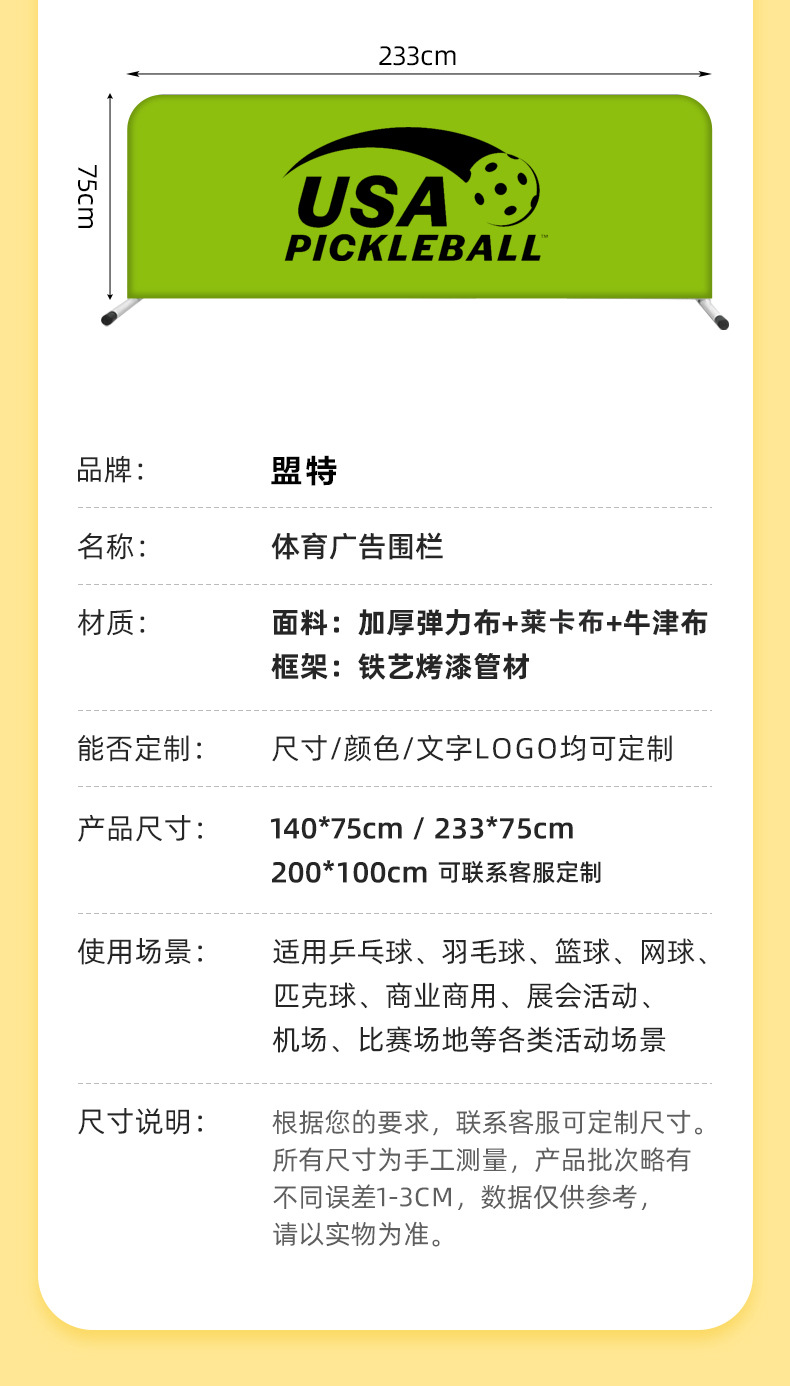 ![]() | Oxford cloth 25 round tube assembled pickleball baffle 140*75 with opening | ¥68.0 / ≈ 805 ₽ | 910 | 5912701513443 | |