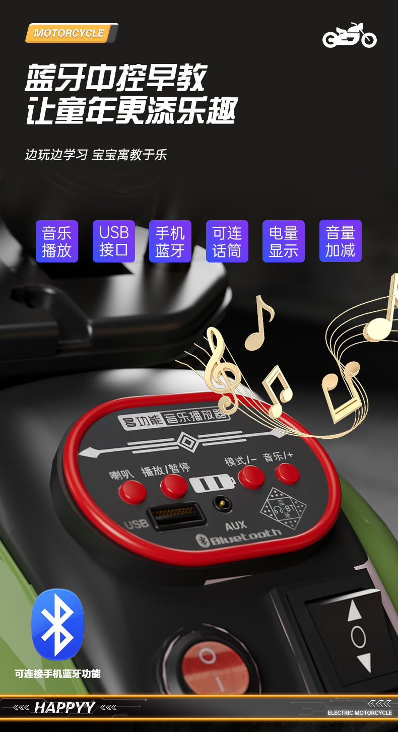 ![]() | Large motorcycle for 1-7 years old [permanent warranty] all-inclusive if there is any problem - single drive green [mobile phone bluetooth + explosion-proof battery + rear seat] super power | ¥238.75 / ≈ 2 884 ₽ | 1000 | 6070975666544 | |
