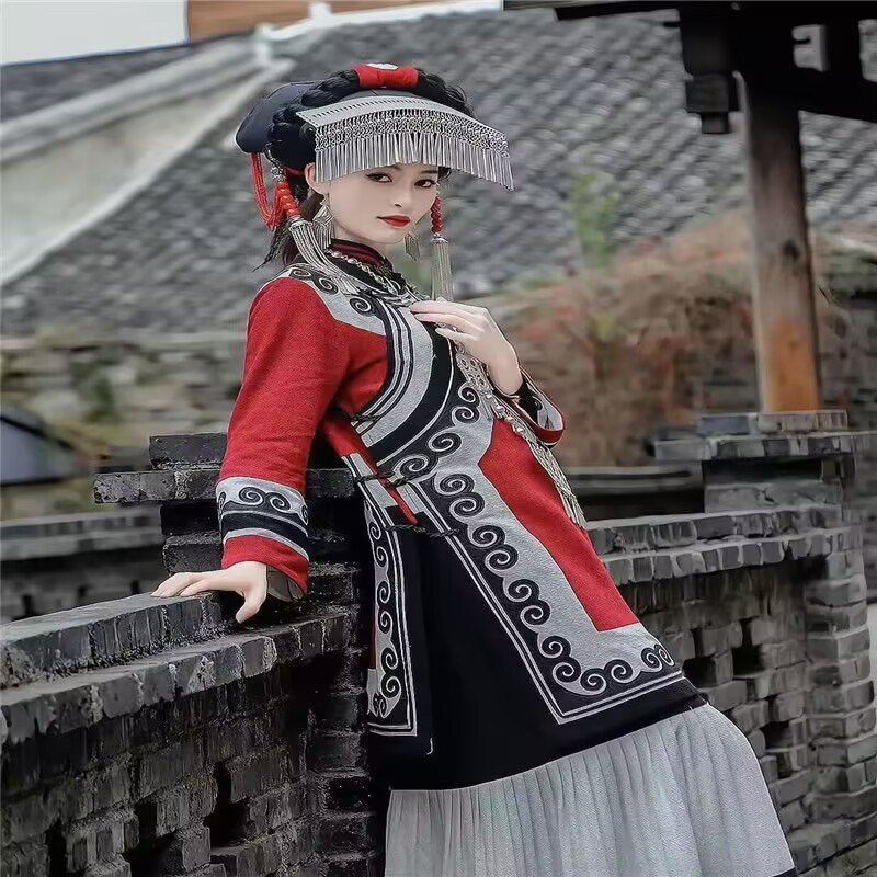 Фото студия Новая девушка Yi этнический стиль сценической одежды для выступлений на фестивале факелов Юннани