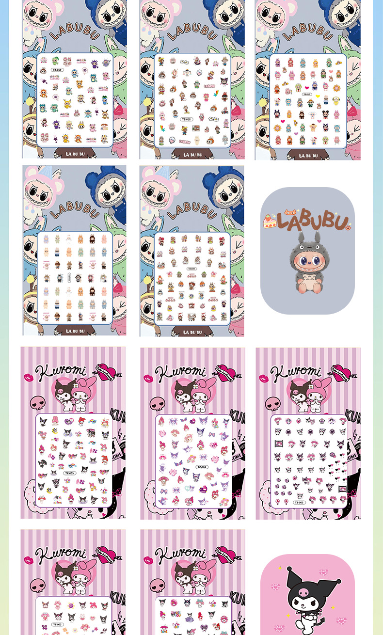 ![]() | The price is for 1 grid, please bid in multiples of 5 | Labubu (glow-in-the-dark nail stickers) | 20шт: ¥0.28, 600шт: ¥0.26, 3000шт: ¥0.24 | 237060 | 5910843285995 | |