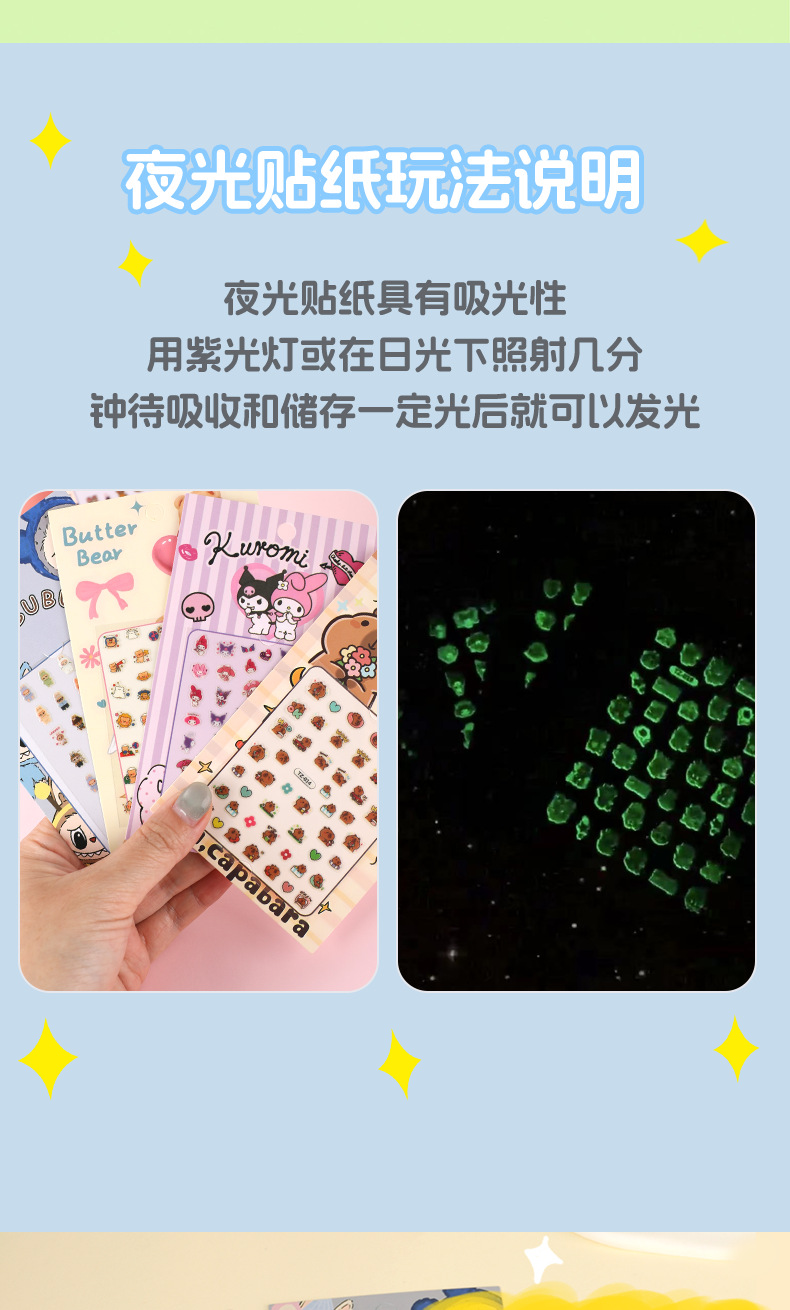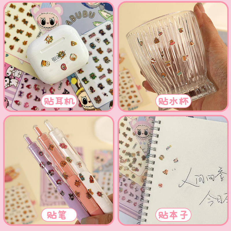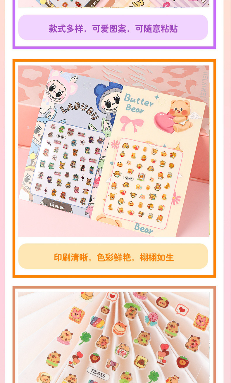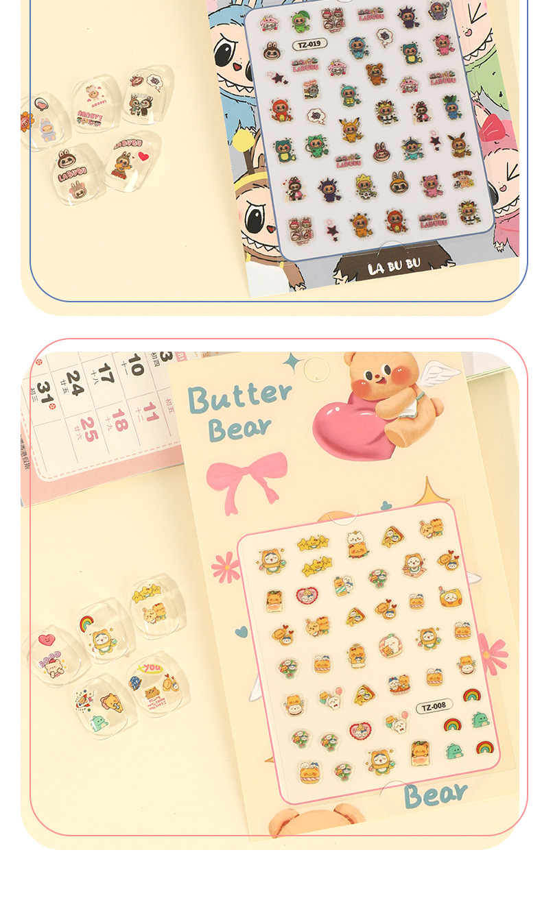 Лабубу 5D светящиеся наклейки для ногтей, мультяшные наклейки для девочек, водонепроницаемые декоративные наклейки для ногтей