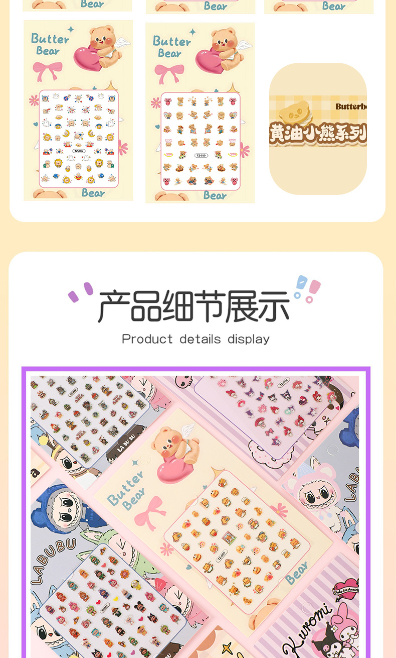 ![]() | The price is for 1 grid, please bid in multiples of 5 | Cream bear (glow-in-the-dark nail stickers) | 20шт: ¥0.28, 600шт: ¥0.26, 3000шт: ¥0.24 | 41333 | 5910843285998 |
