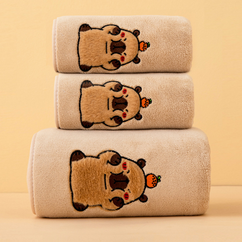 Кастомизированное кросс-бодийное горячее продающееся полотенце Capibala, комплект полотенец для ванной, мультяшное, вышитое, из кораллового велюра, абсорбирующее, быстро сохнущее