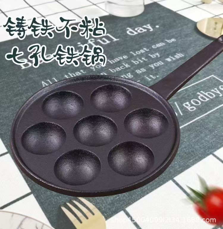 Заводская готовая углубленная и увеличенная антипригарная сковорода для омлетов, форма для запеченных фрикаделек, чугунная семи-отверстная кастрюля для фрикаделек с осьминогом