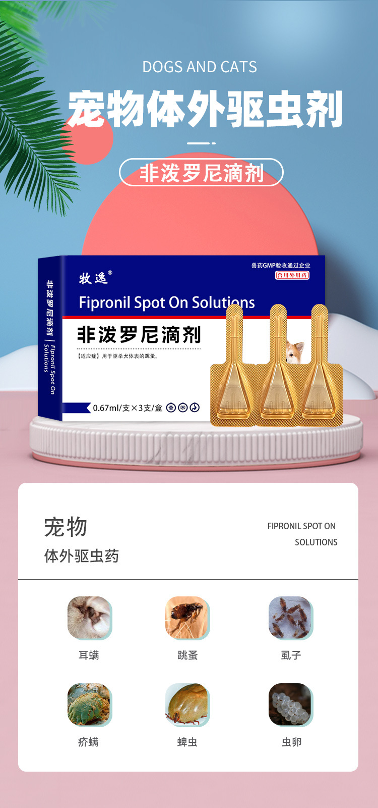 Капли Фипронил для кошек и собак, противогельминтное средство, используемое наружно для уничтожения насекомых, удаления блох и вшей, а также как наружное противогельминтное средство для собак