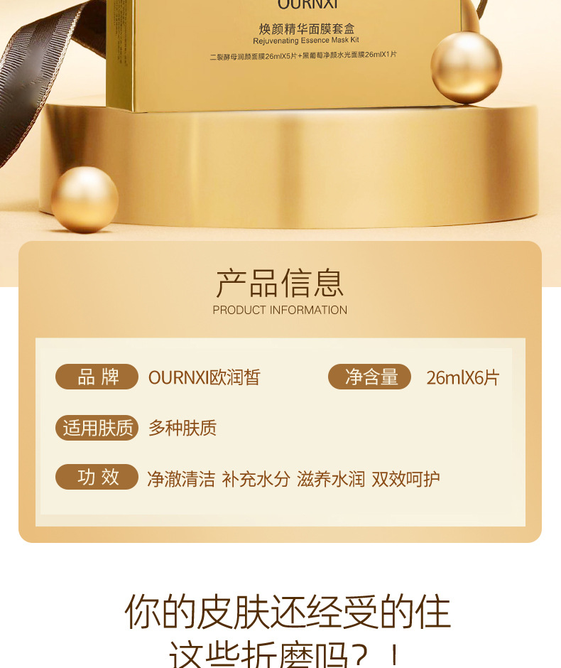 Маска Ourunxi 5+1 с бифидобактериями для мужчин и женщин, увлажняющая, осветляющая, сужающая поры