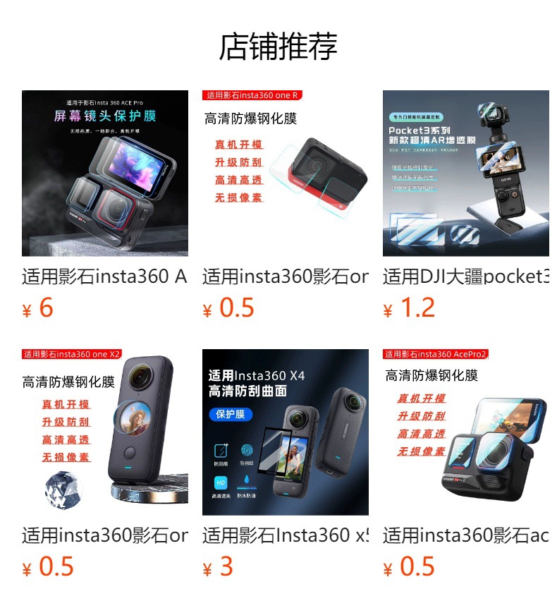 ![]() | Shadowstone insta360 go ultra lens film (soft film) | ¥0.3 / ≈ 4 ₽ | 9559 | 6084306963090 | |
