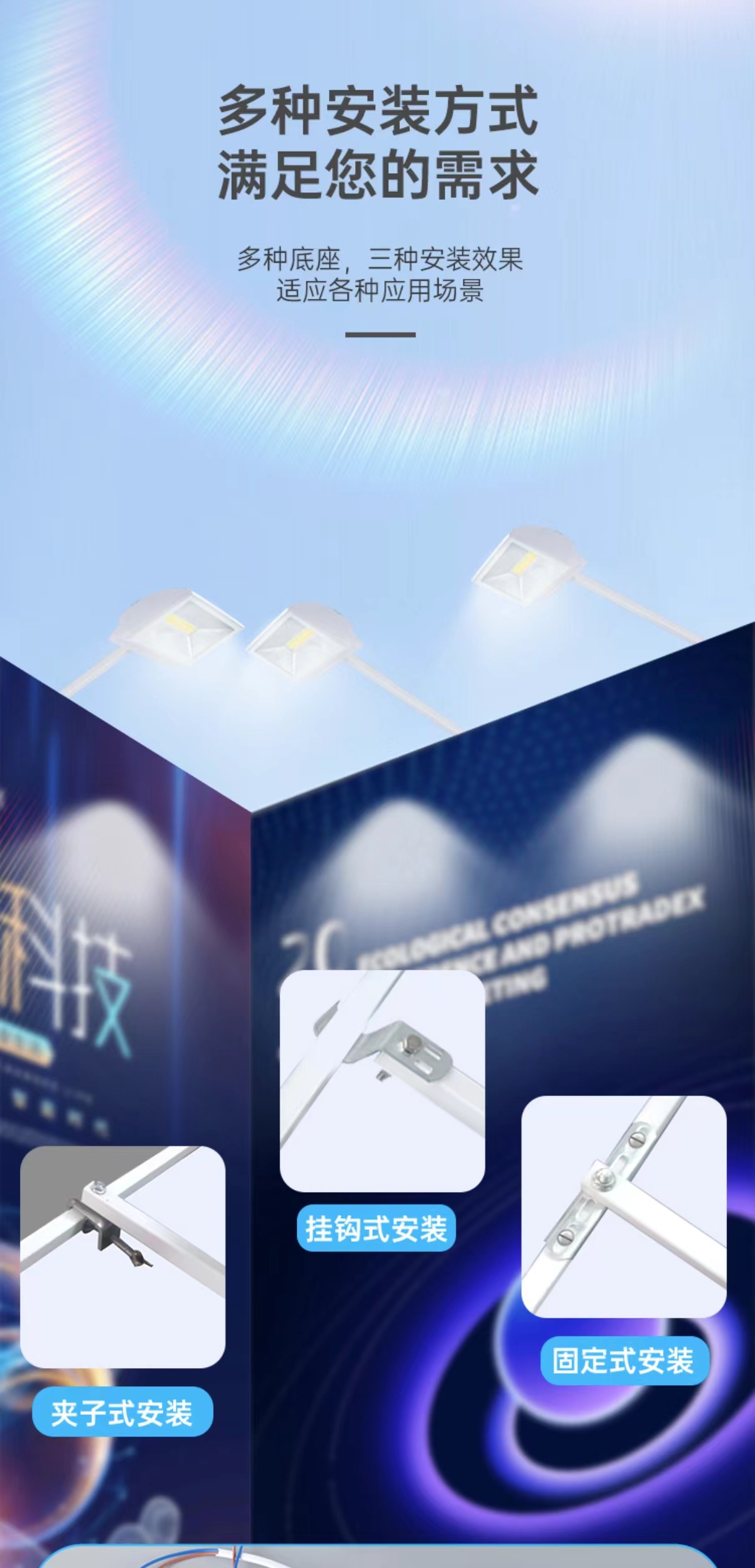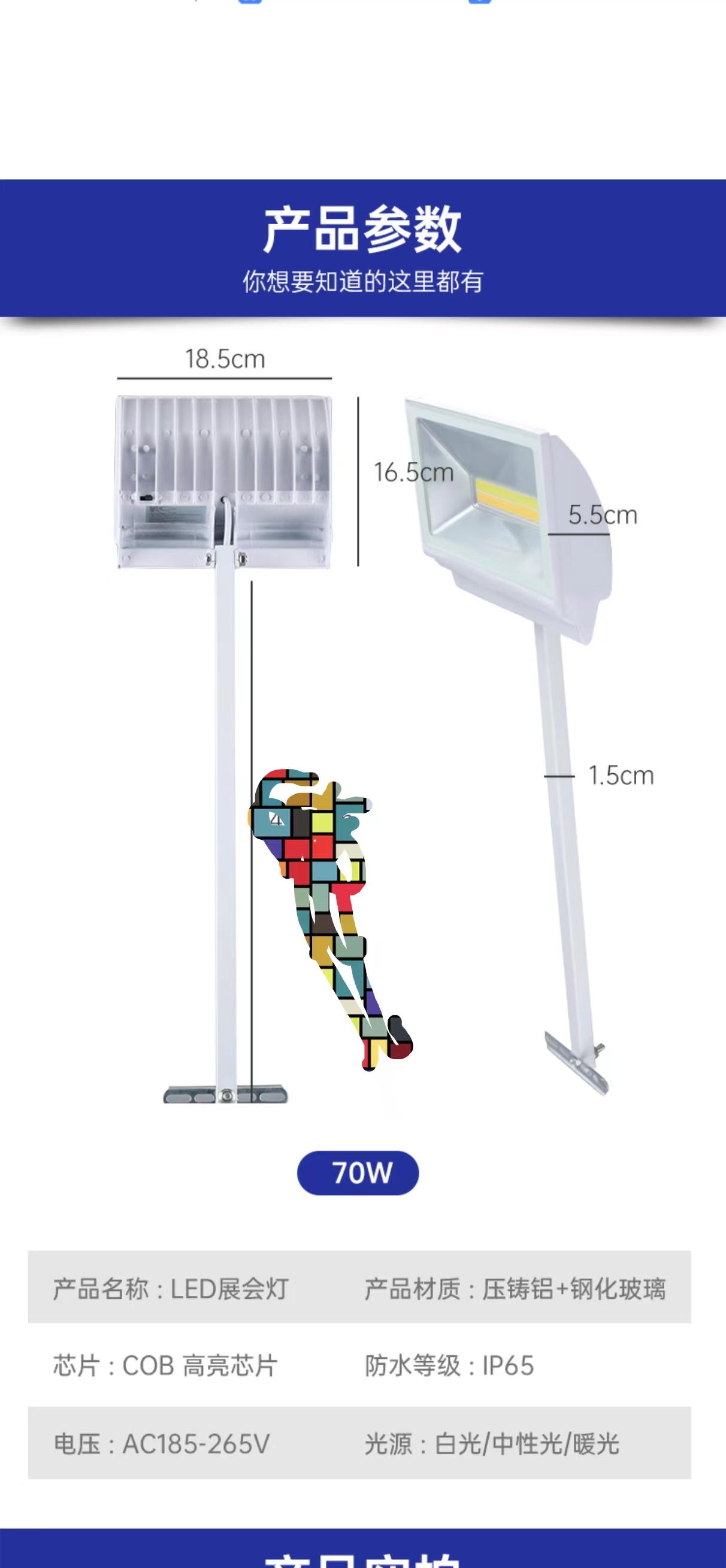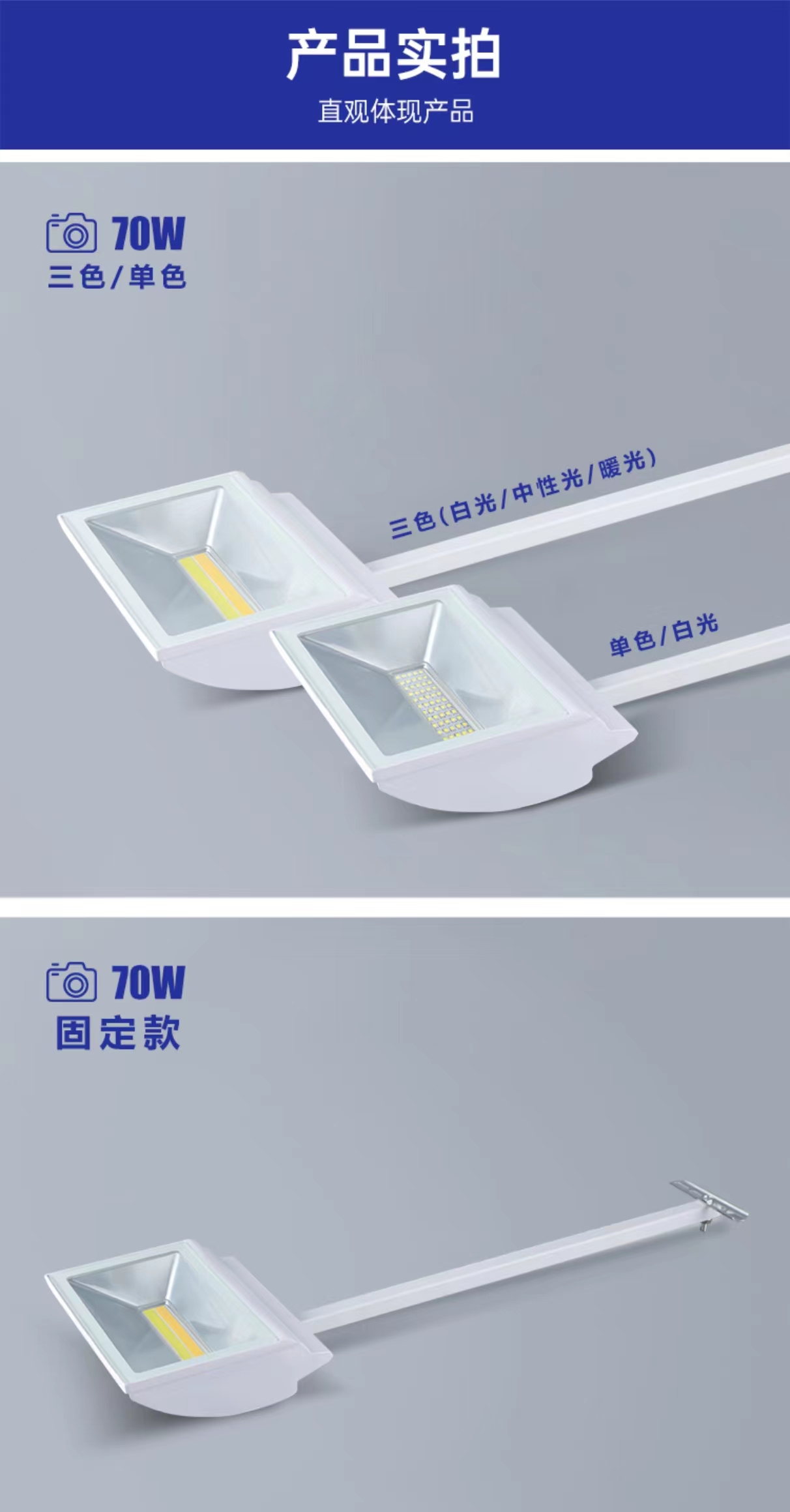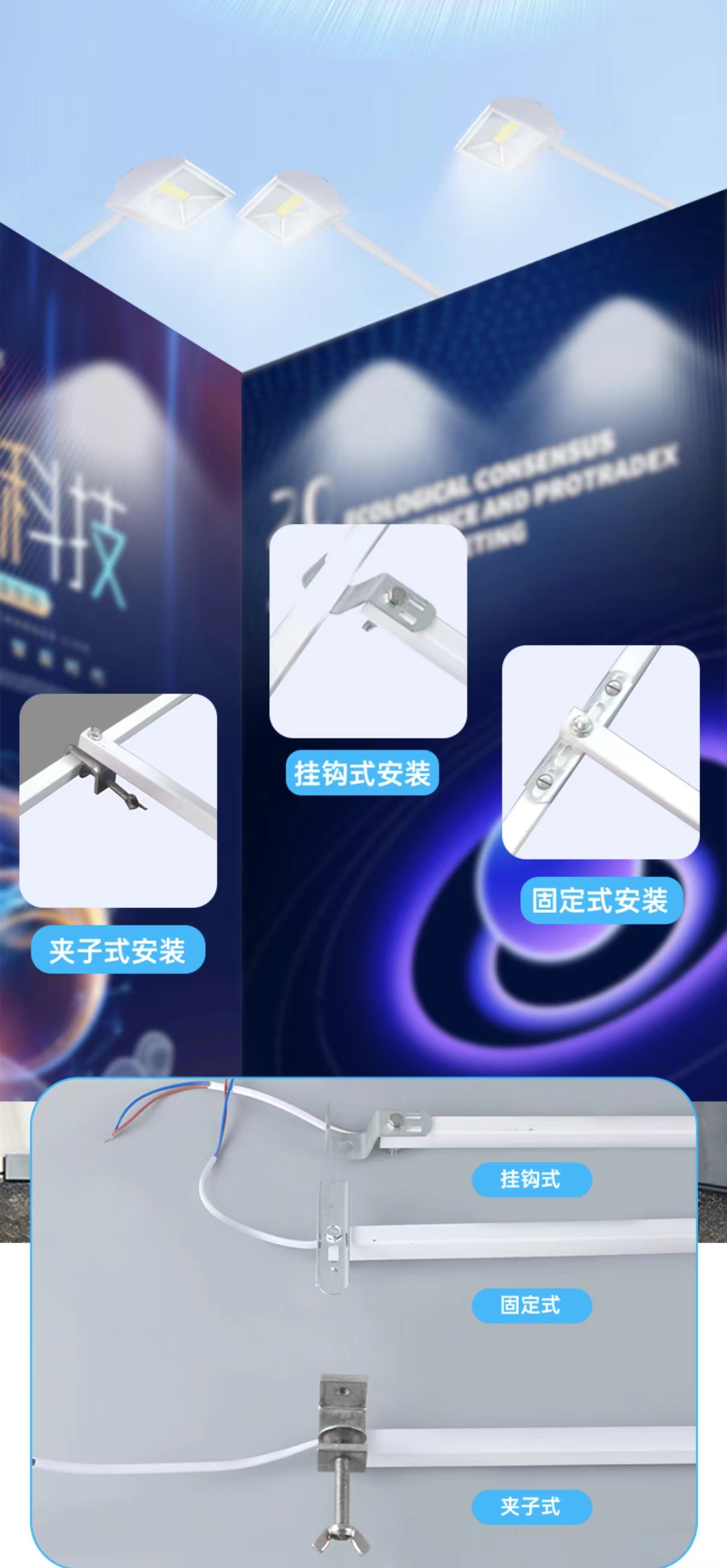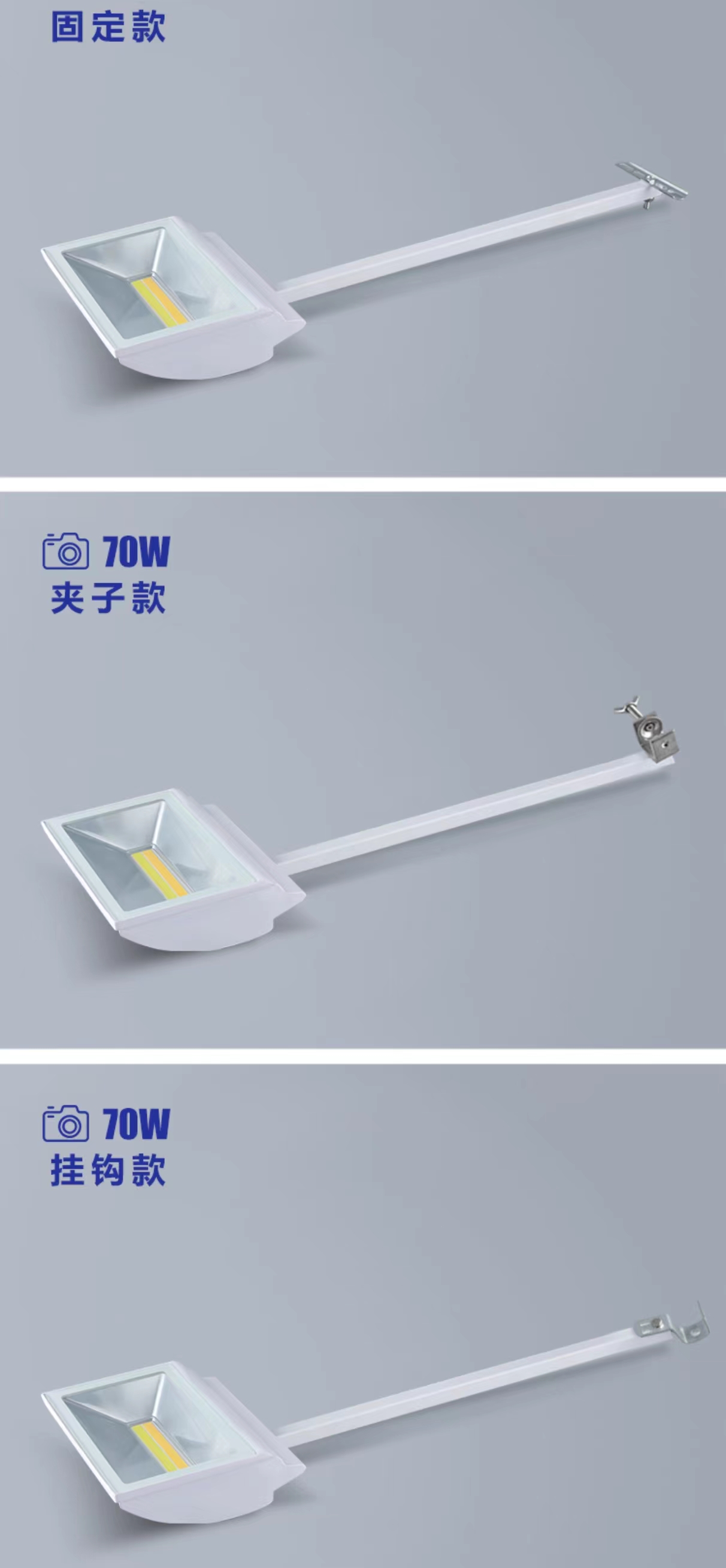 Светодиодный выставочный светильник Длинный зажим 70W Выставочный зал Фоновая стена выставки Дисплей Длинный штанга Лопата Трехцветный свет