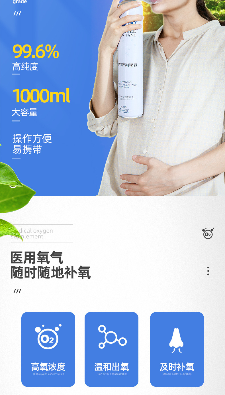 Портативный кислородный цилиндр Zhuochen, кислородный танк 1400 мл, маска для путешествий на высоте, малый кислородный цилиндр, назальный тип ингаляции