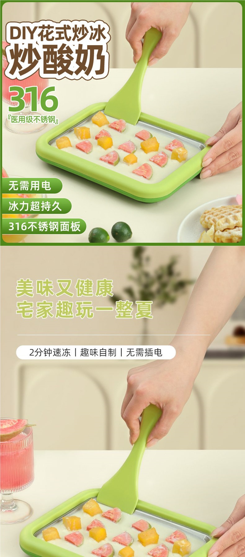 Машина для жарки льда медицинского класса 316, фруктовая, без подключения, машина для мороженого, йогурт, домашняя, маленькая, Amazon