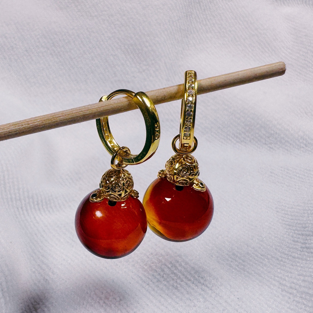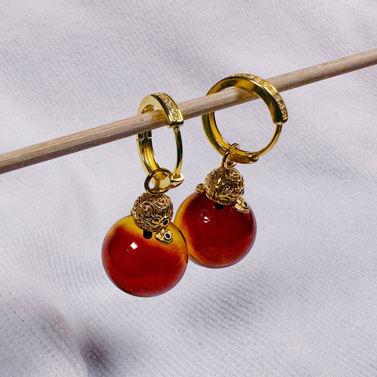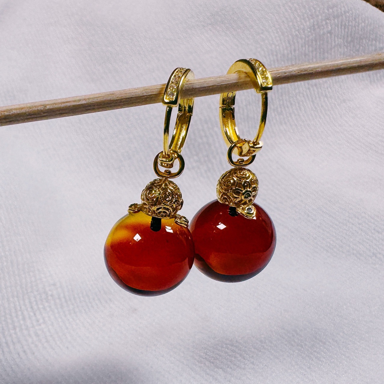 Горох 14мм мексиканский красный и синий янтарь серьги S925 серебро 3A очистка воды высокое качество редкий сорт