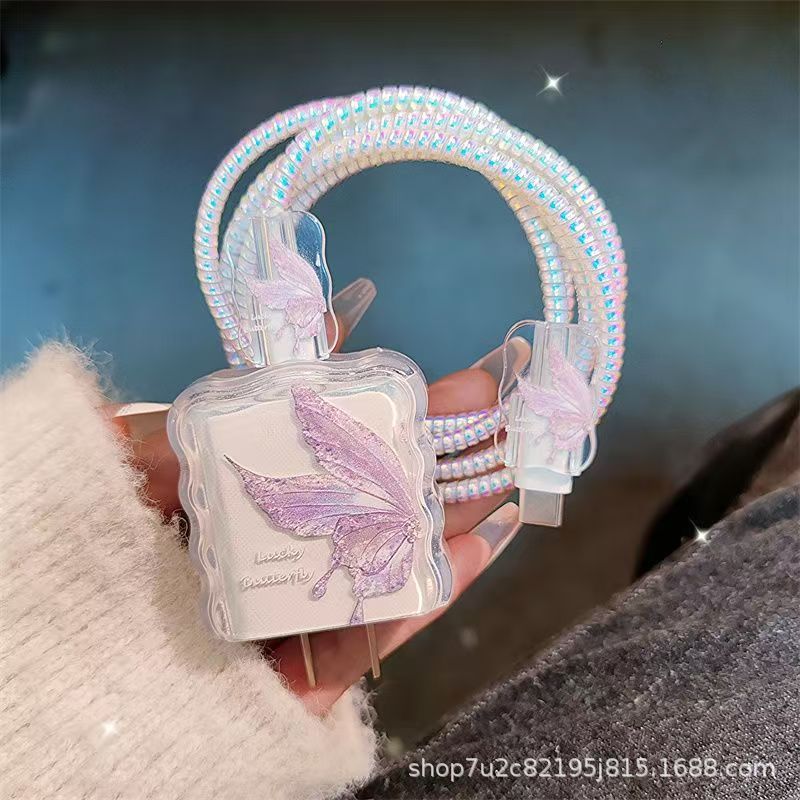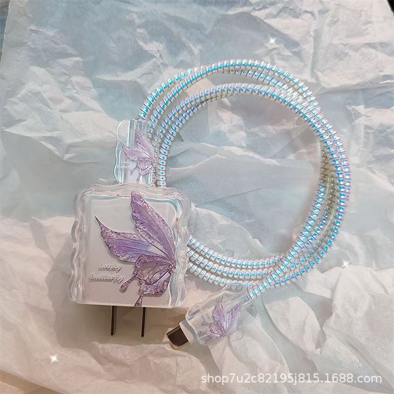 Фиолетовая бабочка подходит для зарядного устройства Apple 20W iPhone 16, защитный чехол для кабеля, противоударный