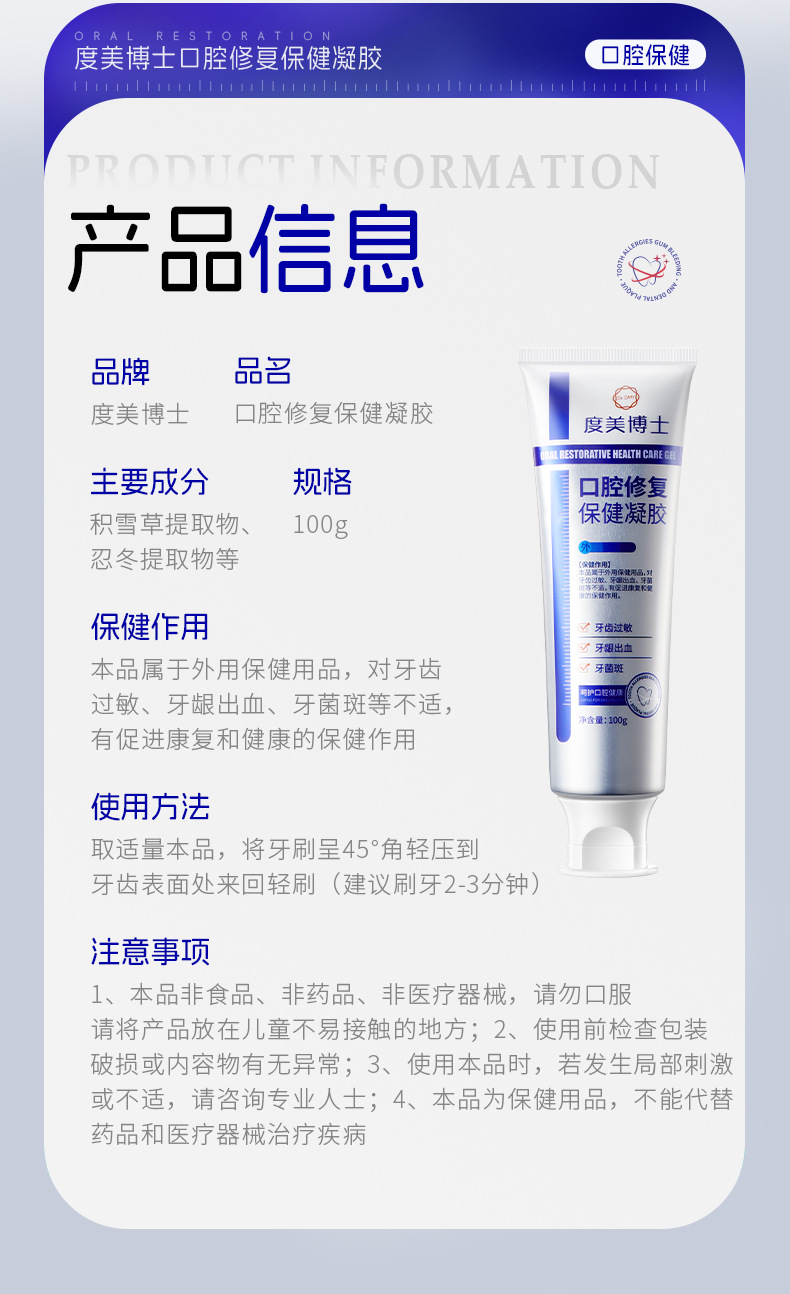 Доктор Думей гель для восстановления здоровья полости рта, уход за деснами, экстракт трав для десен