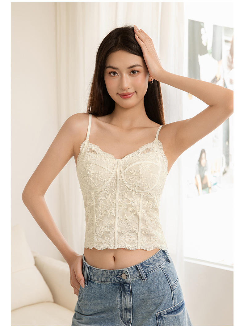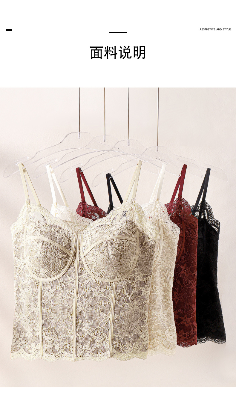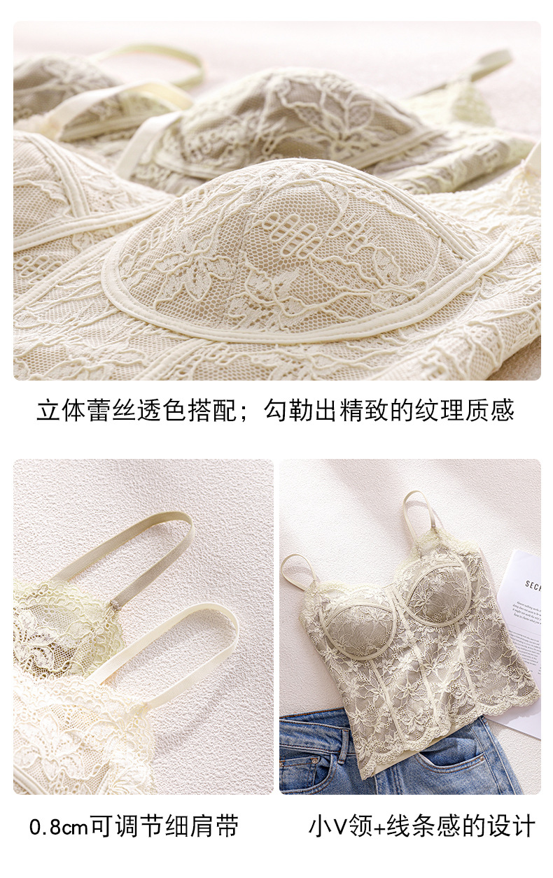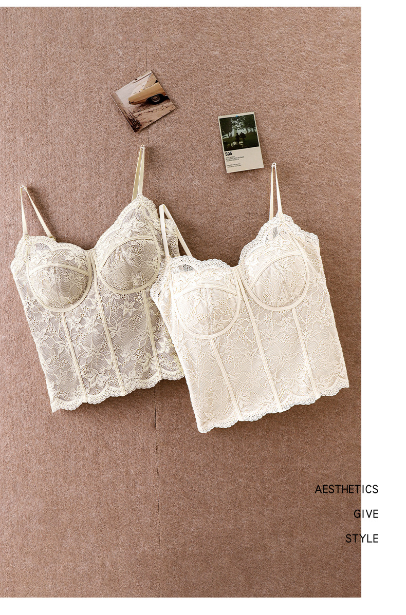 Чистое Желание Сексуальное Французское Кружевное Белье для Женщин, Прорезное Майка с Подушечками для Груди, Подходит для Ношения Снаружи или Внутри, Майка Бюстгальтер