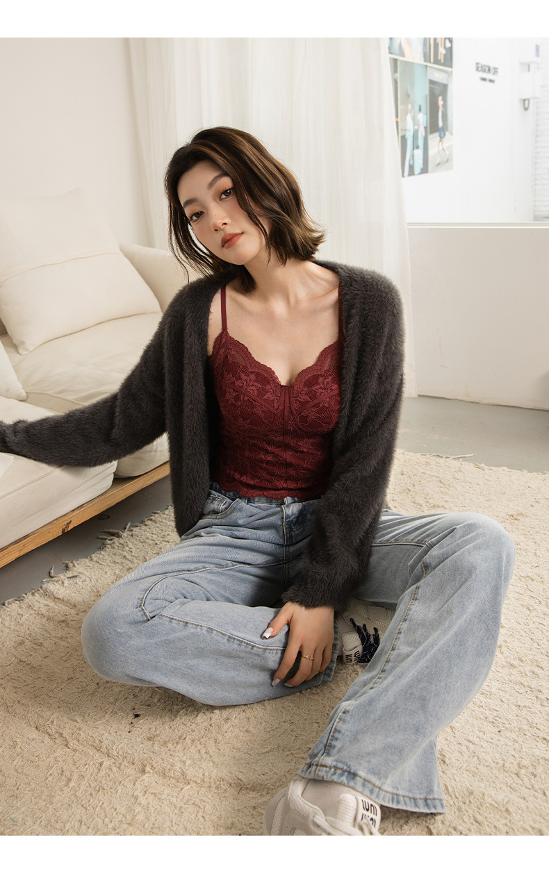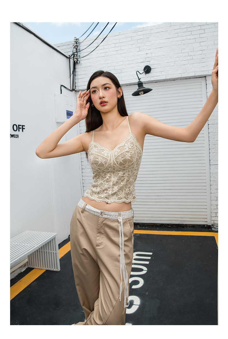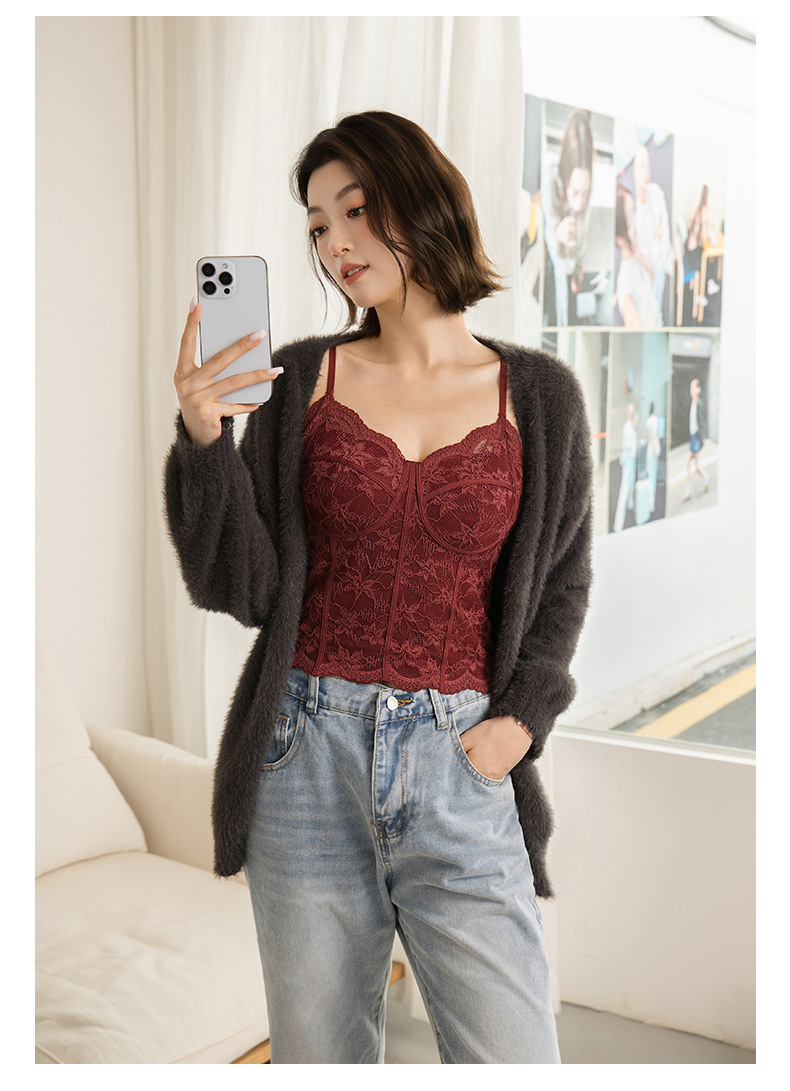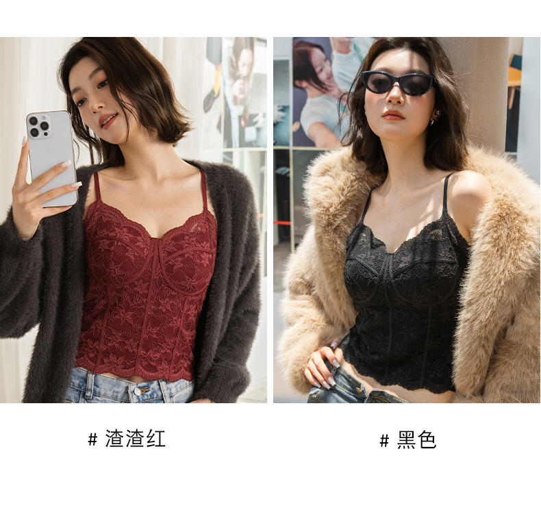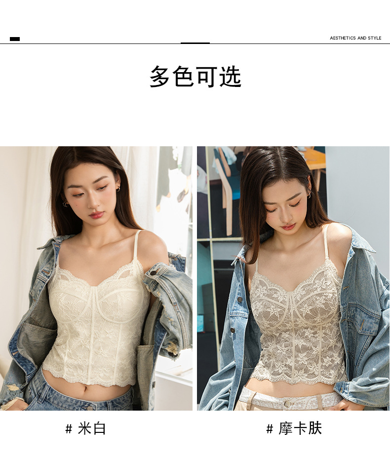 Чистое Желание Сексуальное Французское Кружевное Белье для Женщин, Прорезное Майка с Подушечками для Груди, Подходит для Ношения Снаружи или Внутри, Майка Бюстгальтер