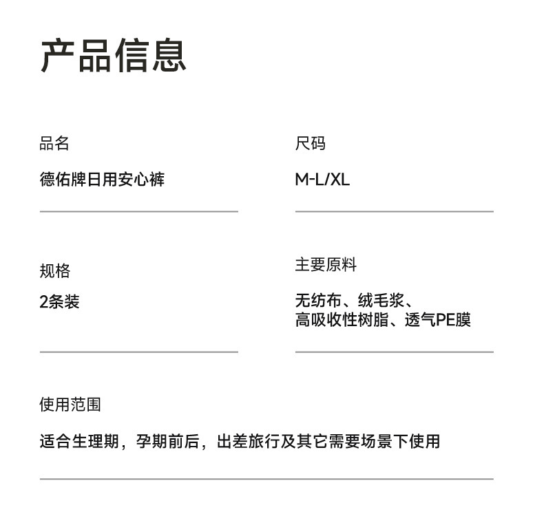 ![]() | Daily sanitary pants m-l size 2 pieces*1 pack | 1шт: ¥9.85 | 9294 | 5908709437481 | |