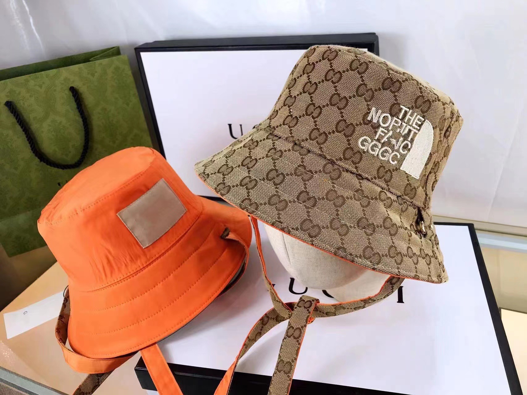 Кросс-бордерная модная вышитая двухсторонняя ведерная шляпа для женщин с полным логотипом, жаккардовый узор и шнурок для мужчин