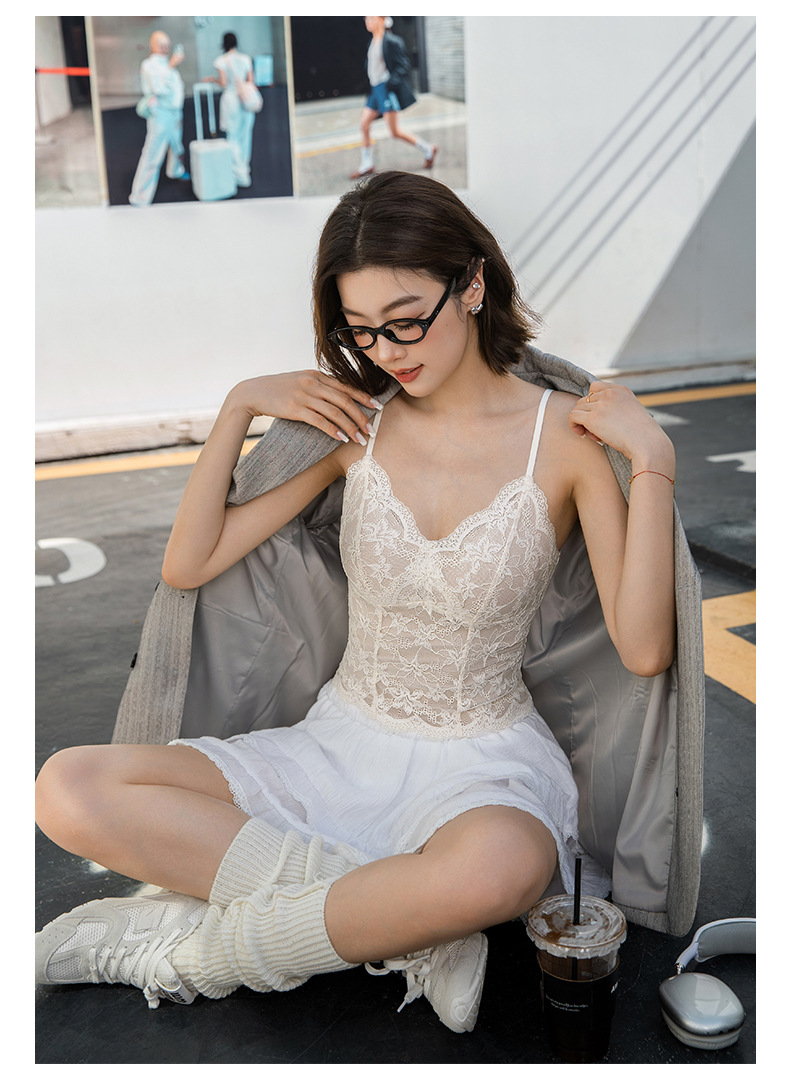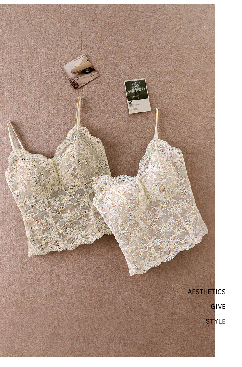 Кружевная майка в винтажном французском стиле с вшитыми чашечками, длинный облегающий бюстгальтер с красивым дизайном спинки