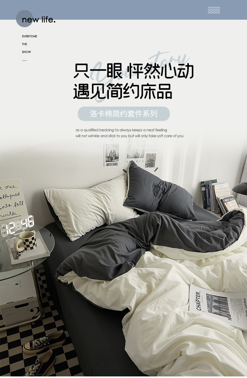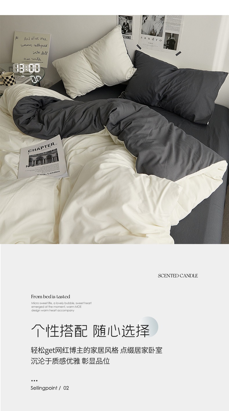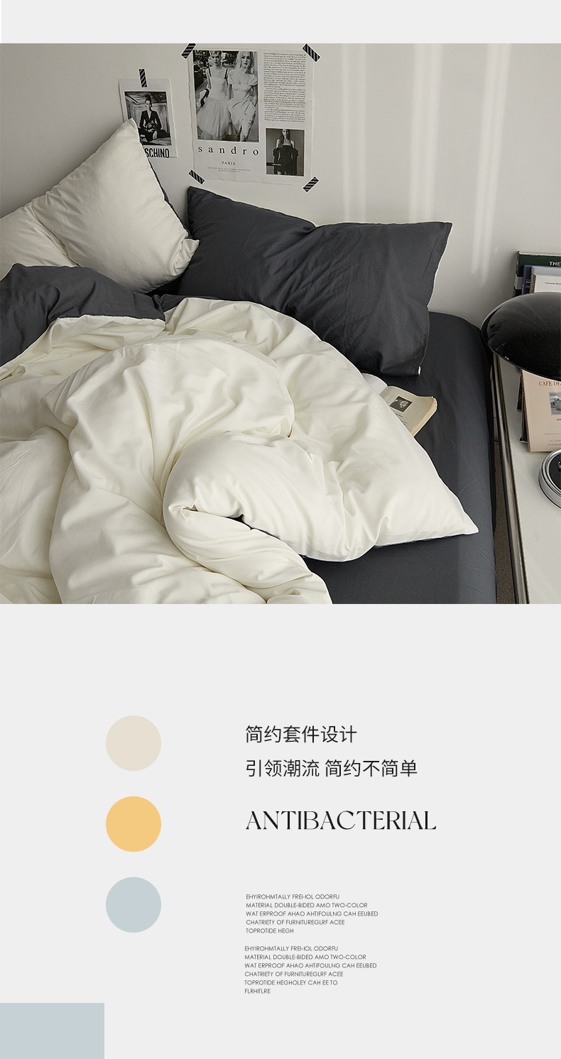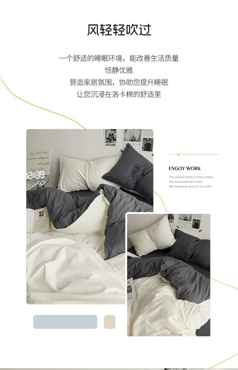 Четырехкомпонентный комплект постельного белья из стирки хлопка, однотонный, дружелюбный к коже, для студентов в общежитии