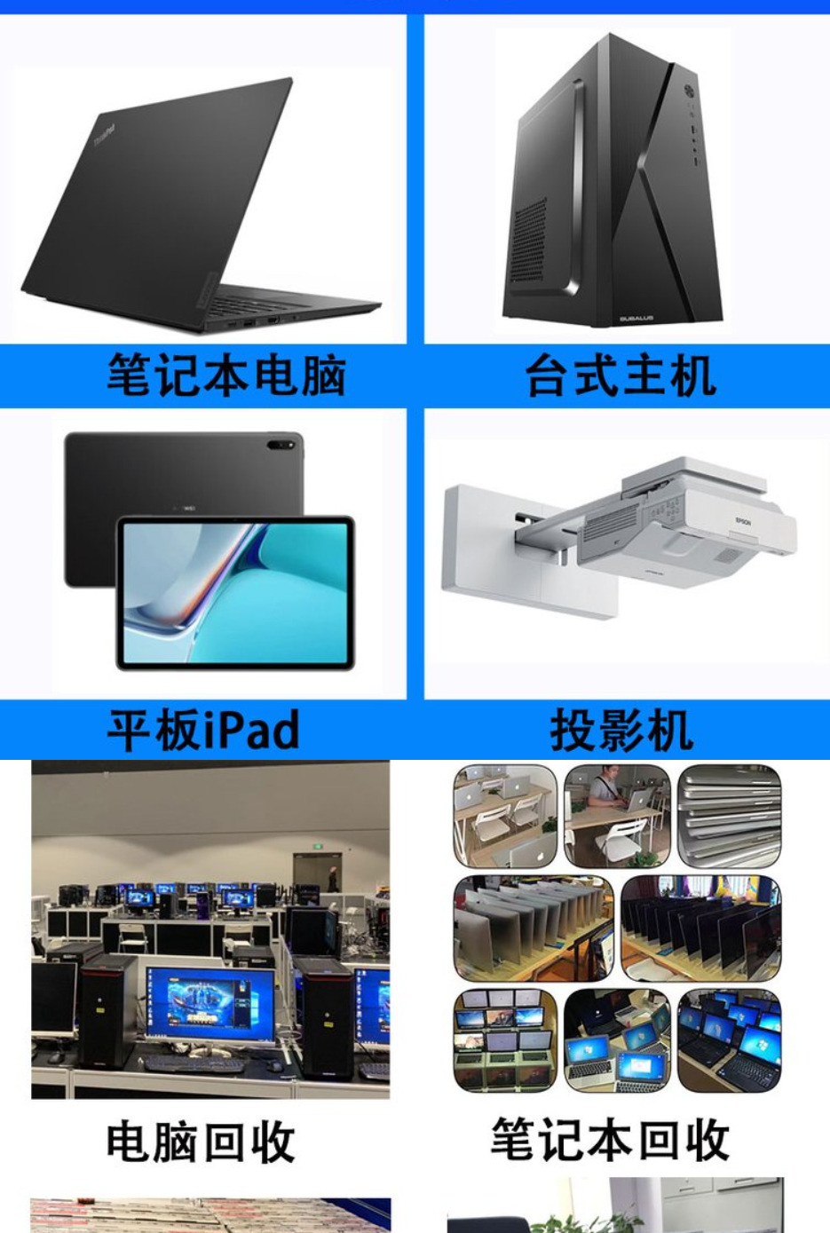 四、电脑回收、变压器、配电柜回收,库存物资回收,电子元件回收,机械废钢回收(冲床)等物资。