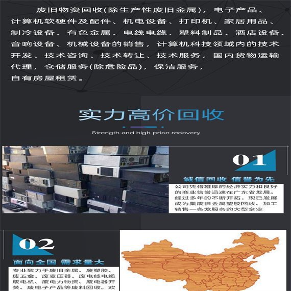 四、电脑回收、变压器、配电柜回收,库存物资回收,电子元件回收,机械废钢回收(冲床)等物资。