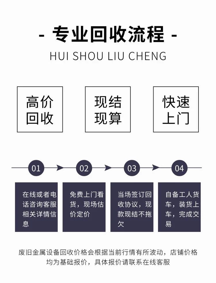 三、废旧废钢回收:电动机,发电机组、废旧变压器,配电柜,中央空调、机床、锅炉等废旧产品。