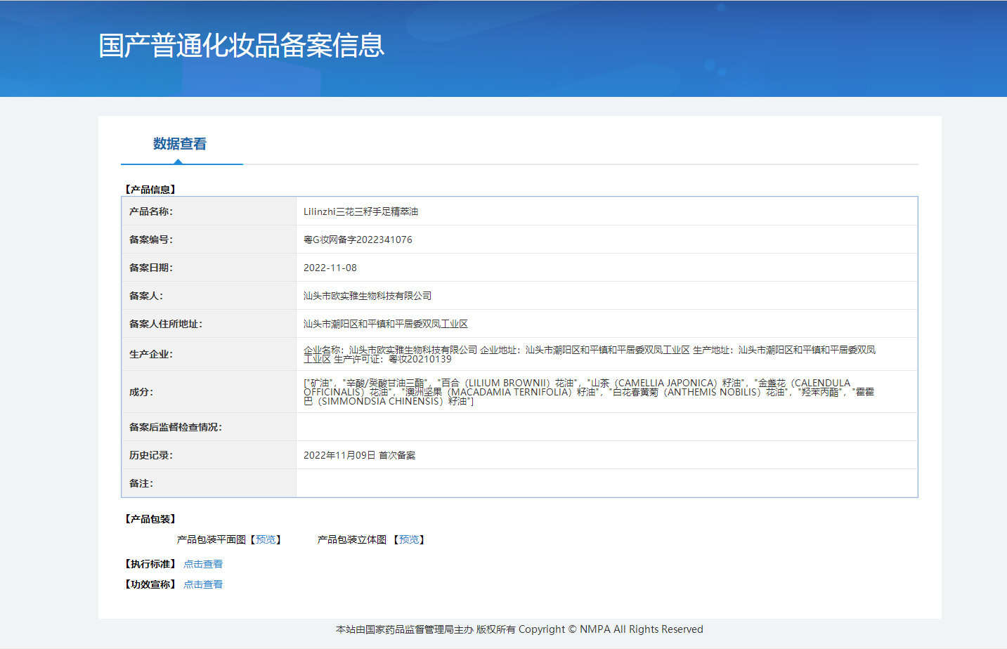 Номер сертификата регистрации несpecial косметики Guangdong g makeup network preparation number 2023499327