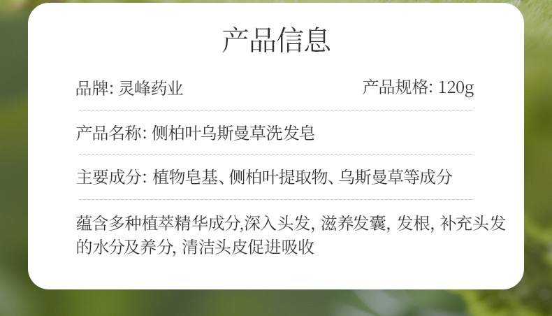 Название продукта Lingfeng pharmaceutical arborvitae leaf usman grass shampoo soap