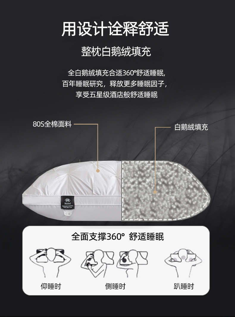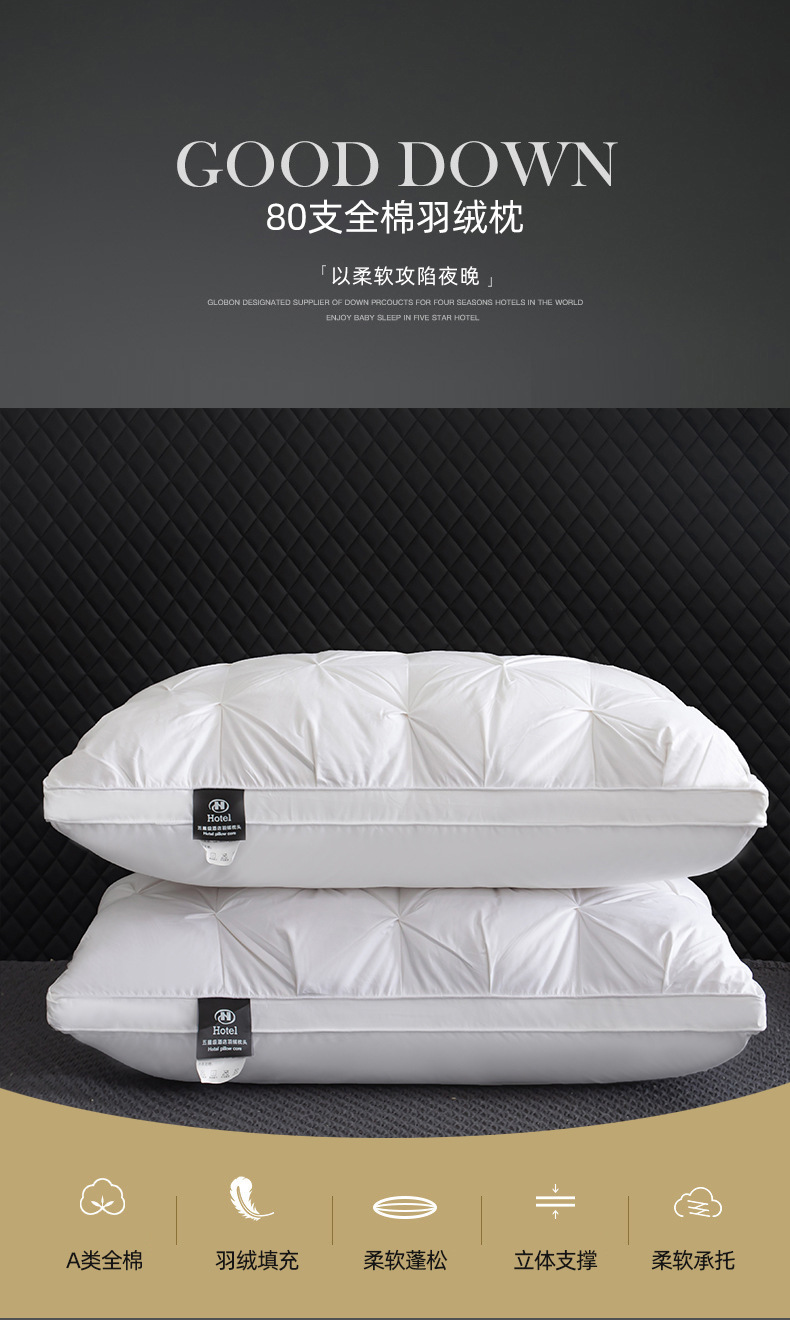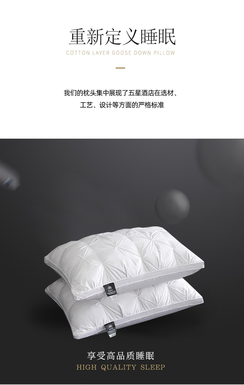 Подушка высокого класса для отелей, белое гусиное пуховое ядро, не сжимающаяся, не деформирующаяся, пара подушек для поддержки шейного отдела позвоночника