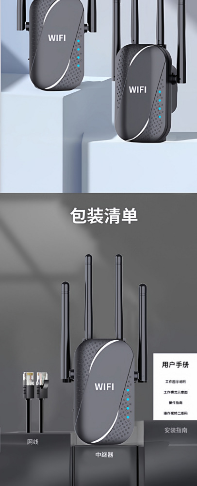 Список упаковки Wifi wireless repeater x1 english manual x 1rj45 network cable x 1