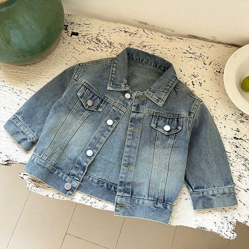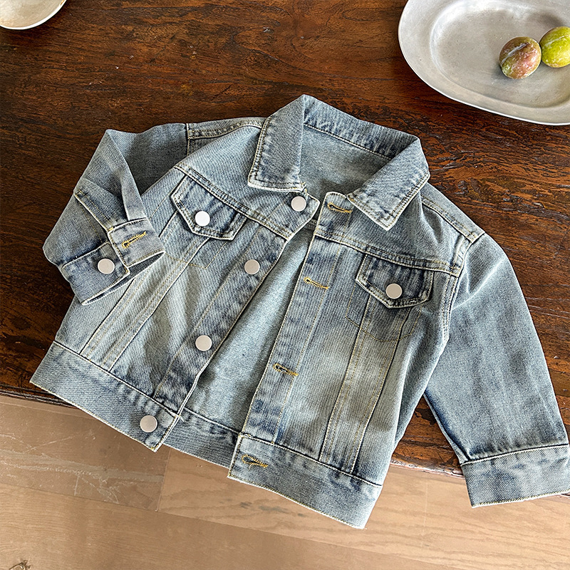 Детская джинсовая куртка 2026 весна и осень Новый корейский стиль Стильный ретро кардиган для мальчиков и девочек Модный топ для малышей