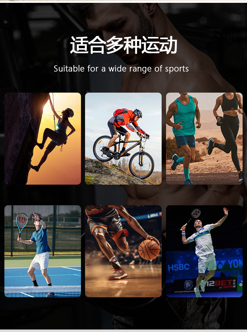 Применимые сценарии Fitness equipment, Health massage, Fitness and bodybuilding, Sports trends, Cycling, Ice and snow sports, Extreme challenge, Hiking and camping, Shooting sports, Dance movement, Table tennis and badminton sports, Other ball sports