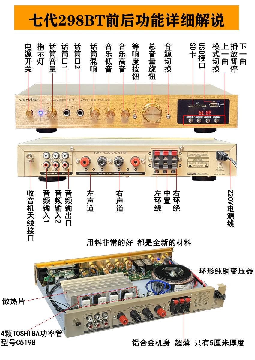 starklok av-298bt5声道家用蓝牙功放机家庭影院高保真7.1功放hif